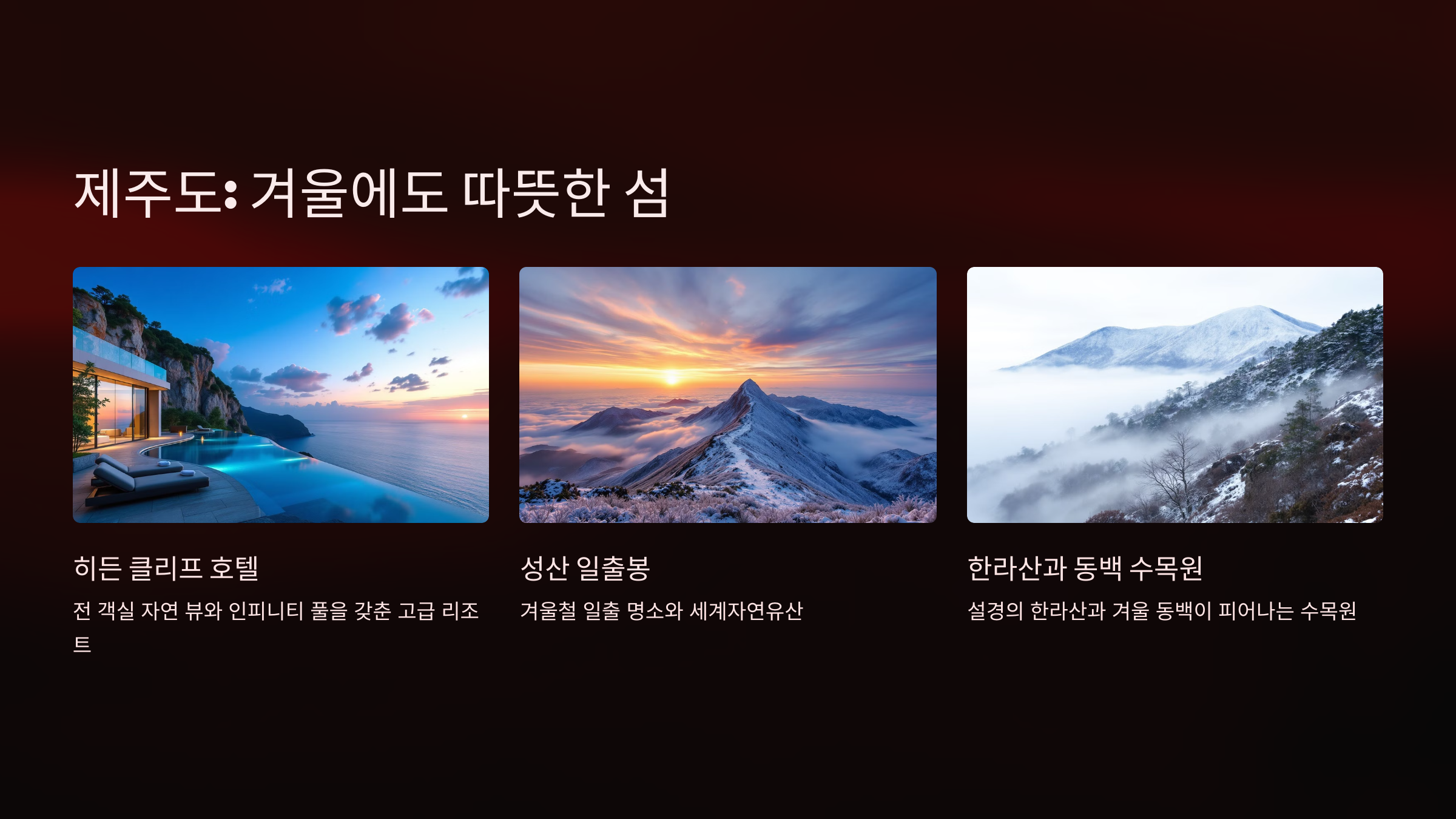 - 성산 일출봉: 제주 동쪽 끝에서 감상하는 장엄한 겨울 일출.