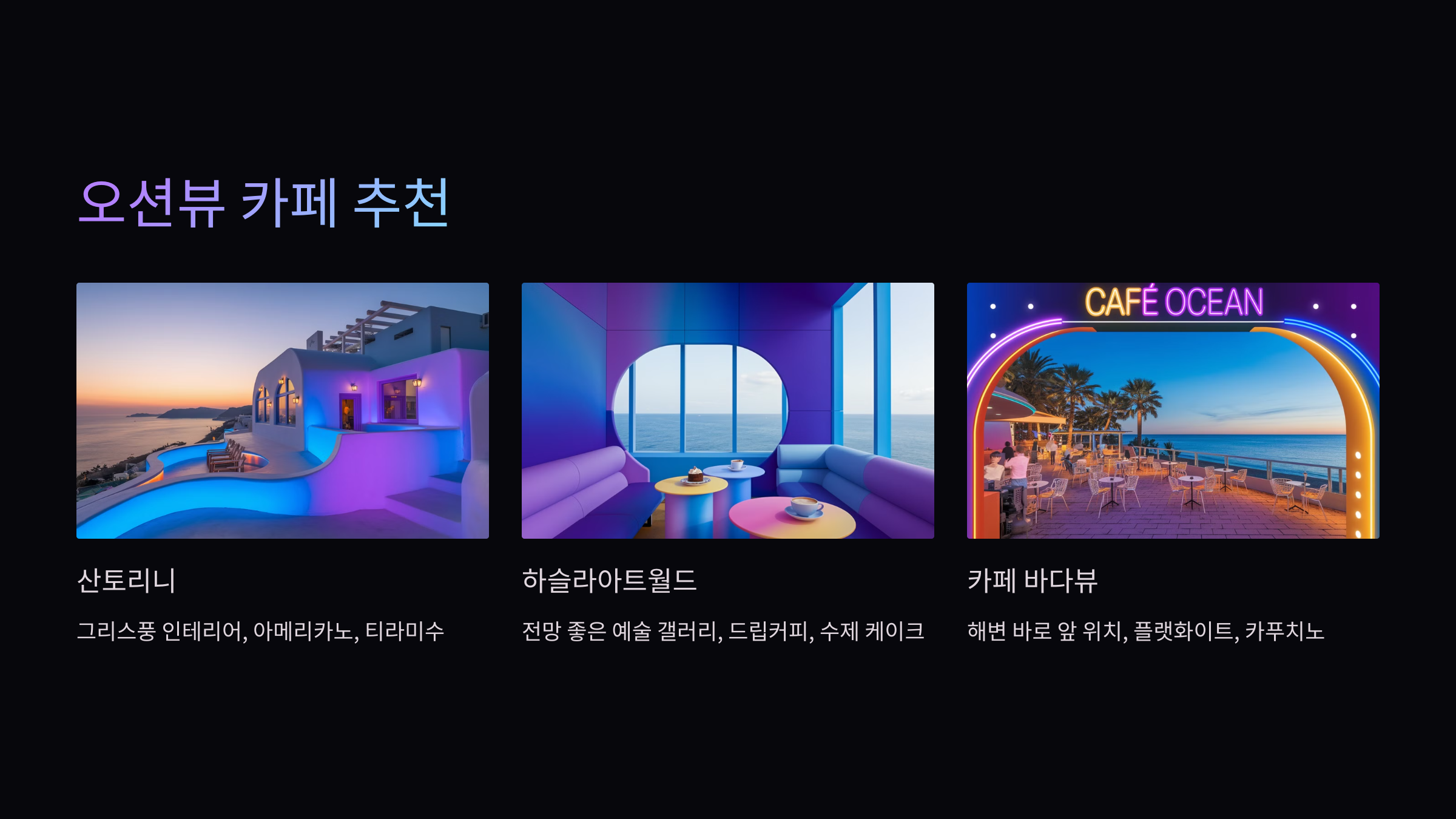 | 산토리니 | 그리스풍 인테리어 & 오션뷰 | 아메리카노, 티라미수 |