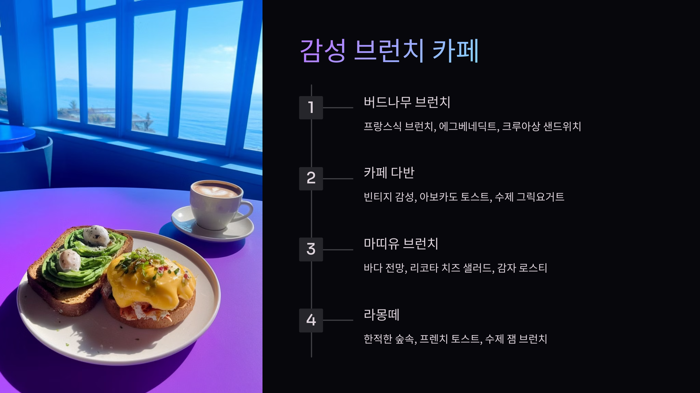 - 오전 9~11시 방문 추천 - 브런치 카페는 점심시간 전후로 붐빌 수 있어요.