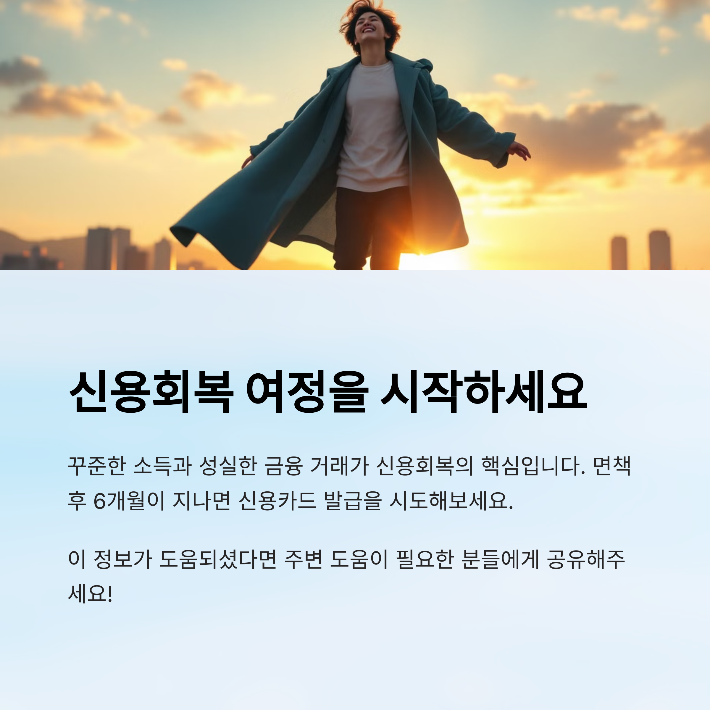많은 분들이 개인회생 면책 후에도 신용불량자로 남는다고 오해하곤 해요. 하지만 일정 시간이 지나면 금융생활이 가능해지고, 꾸준히 관리하면 신용도도 점차 회복될 수 있어요. 중요한 건, ‘지금부터’예요!