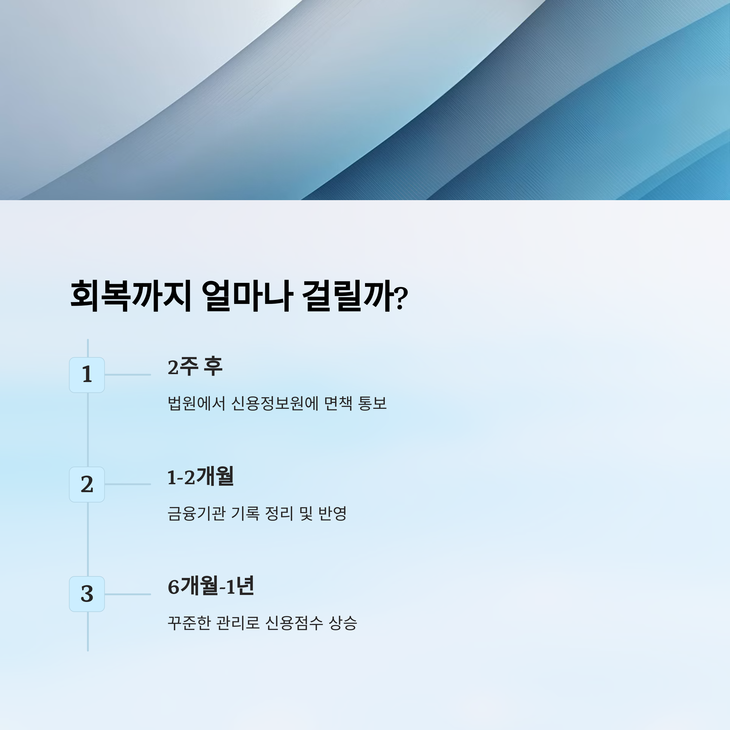 보통 신용점수가 실질적으로 회복되기 시작하는 시점은 면책 후 2년 정도부터라고 봐요. 이때부터는 소액의 대출 상품이나 보증보험 카드 같은 걸 시도해볼 수 있어요. 중요한 건 ‘시간’과 ‘성실함’이에요.