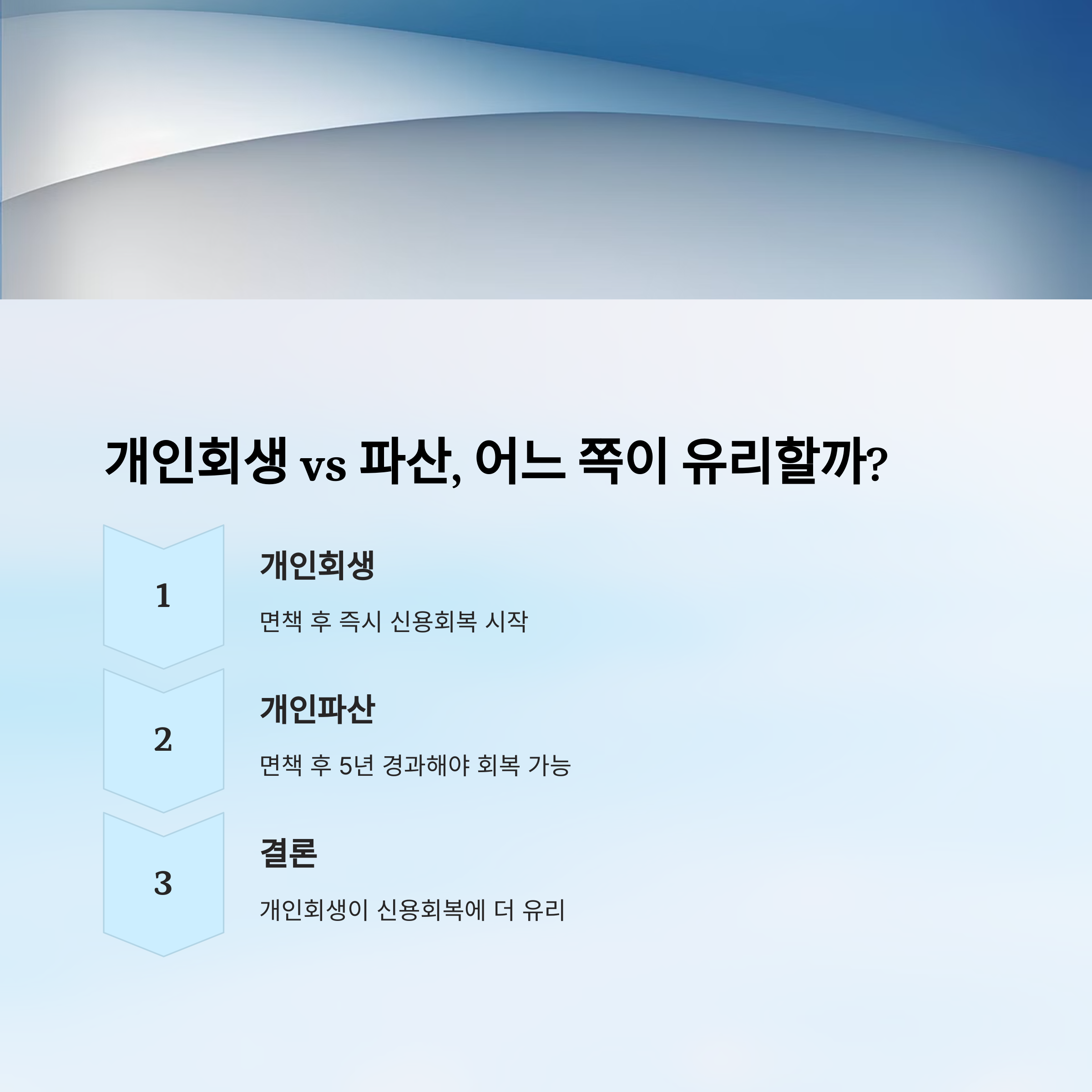 결론적으로, 신용 회복을 고려한다면 ‘회생’이 훨씬 유리하다는 평가가 많아요. 실제로 금융기관에서도 회생 이력자는 일정 기간 후 ‘복구 가능성’이 있는 집단으로 관리해요.