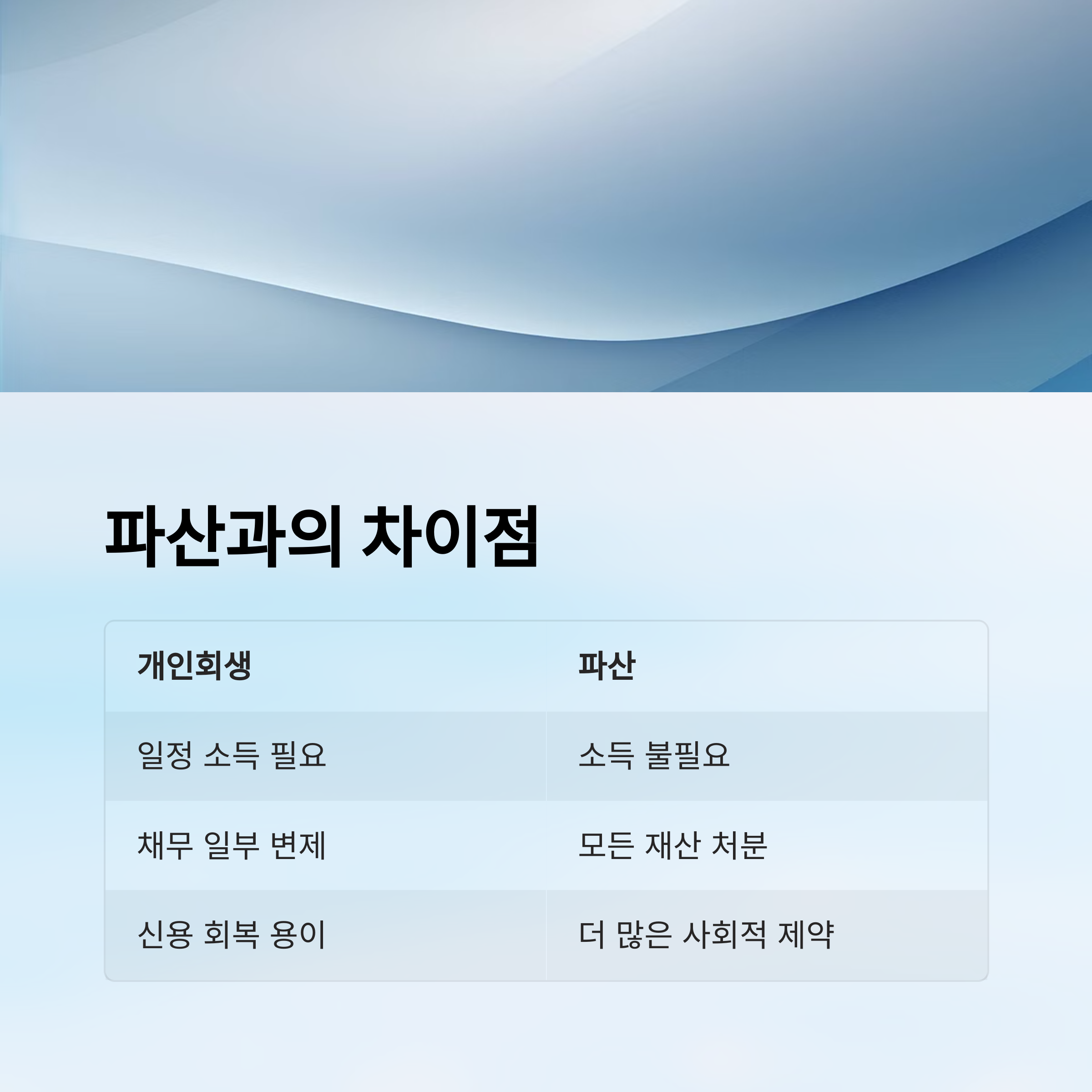| 구분 | 개인회생 | 개인파산 |
