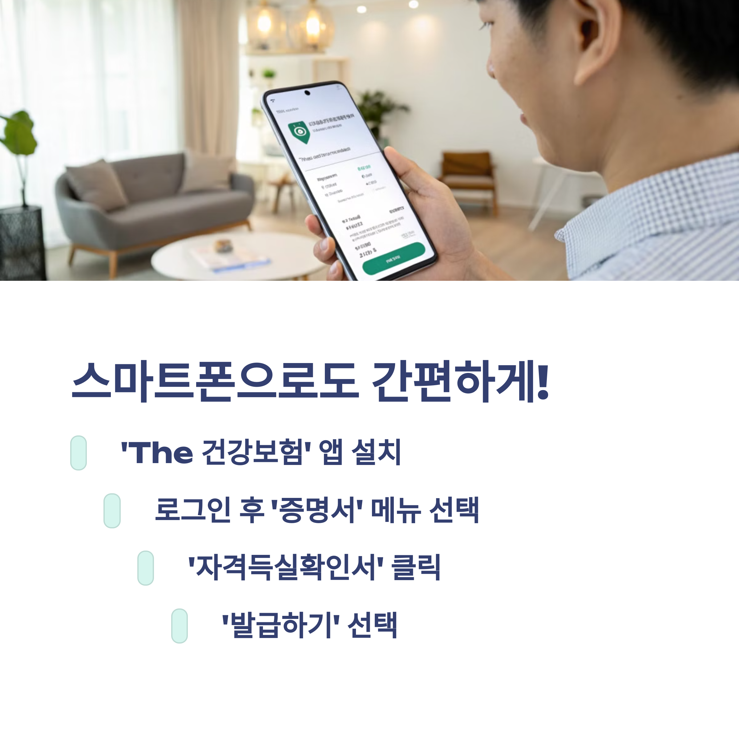 A6. 네, 모바일에서는 ‘The건강보험’ 앱을 설치해야 발급할 수 있어요.