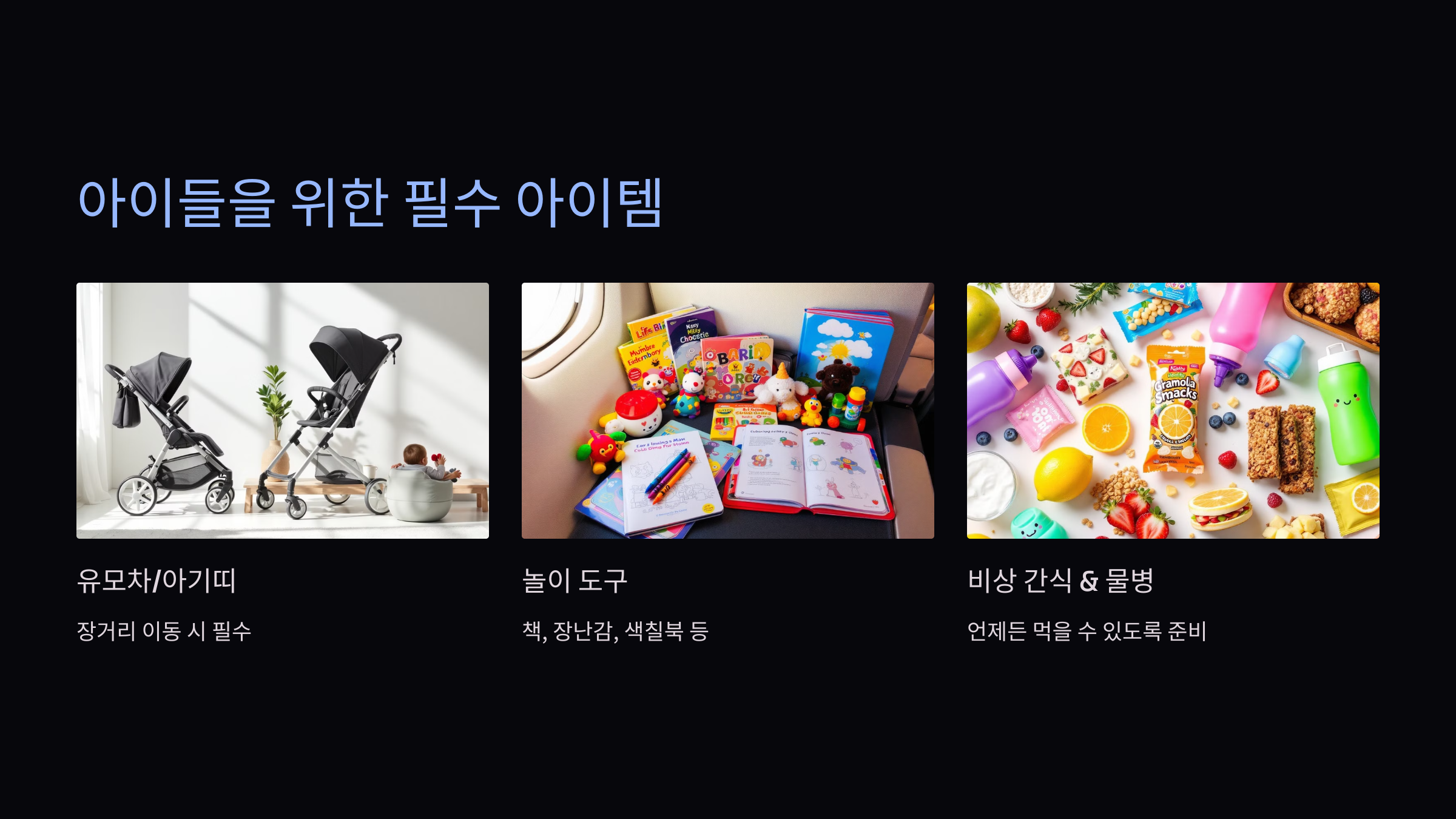 ✅ 꿀팁: 아이들이 좋아하는 익숙한 물건을 챙기면 낯선 환경에서도 편안함을 느낄 수 있어요.