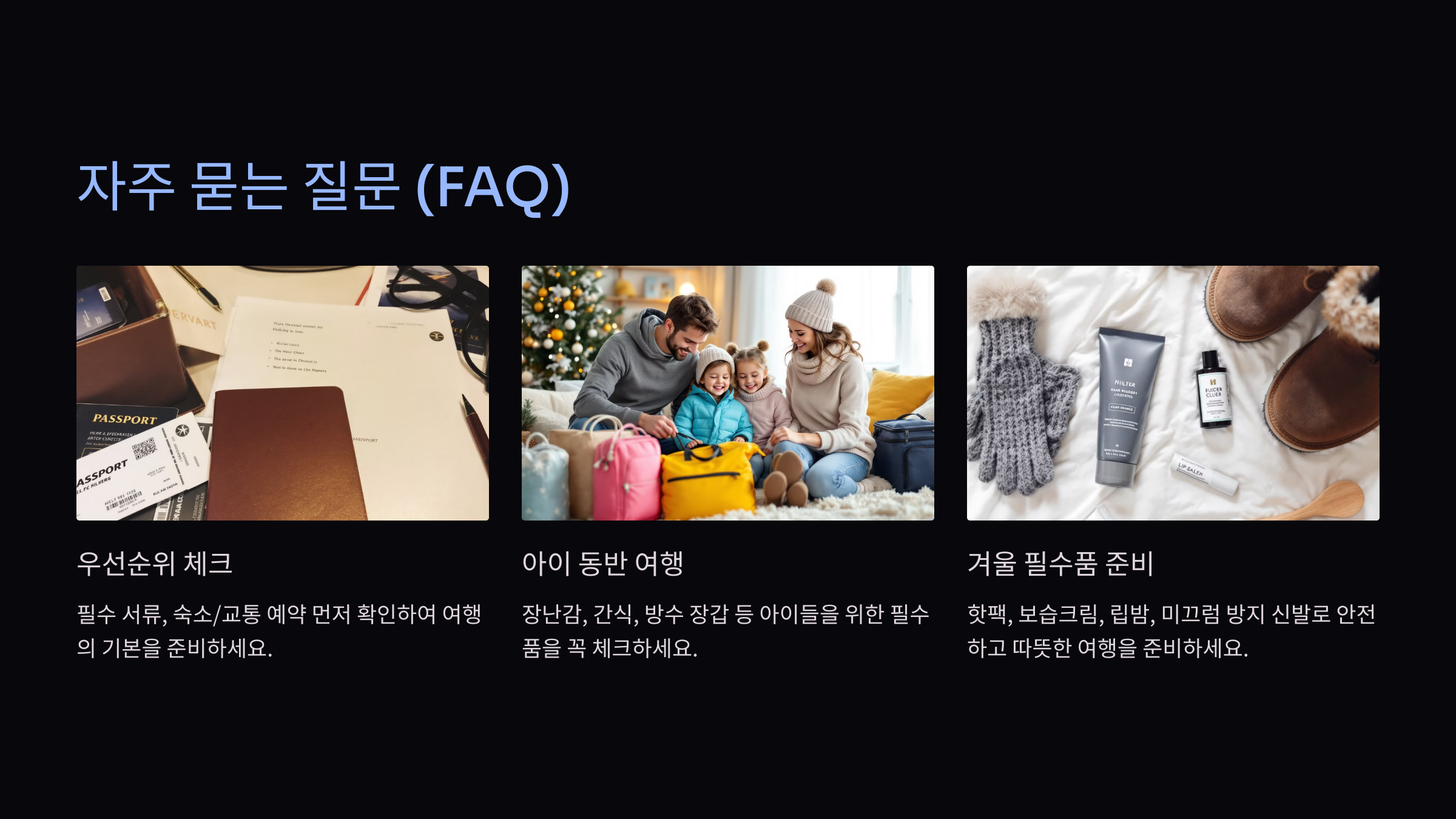 3. 겨울여행에서 방한용품 외에 꼭 챙겨야 할 것은?
