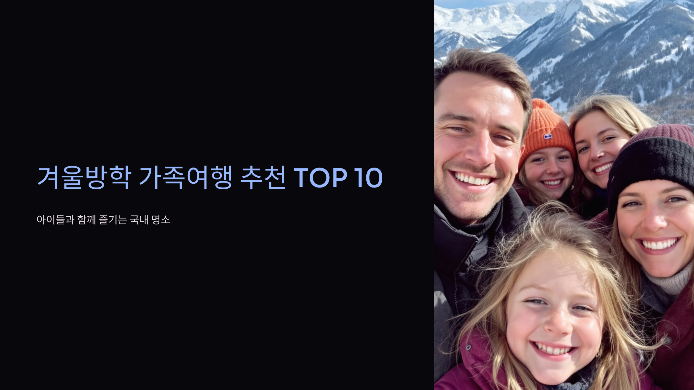 겨울방학은 가족이 함께할 수 있는 소중한 시간입니다. 특히 아이들과 함께라면 재미와 교육, 그리고 따뜻한 추억을 남길 수 있는 여행지가 중요하죠! 이번 글에서는 국내에서 아이들과 함께 즐길 수 있는 겨울 명소 TOP 10을 소개해 드릴게요. 다양한 활동과 매력으로 가득한 이곳들을 보며 설레는 여행 계획을 세워보세요! 🗺️