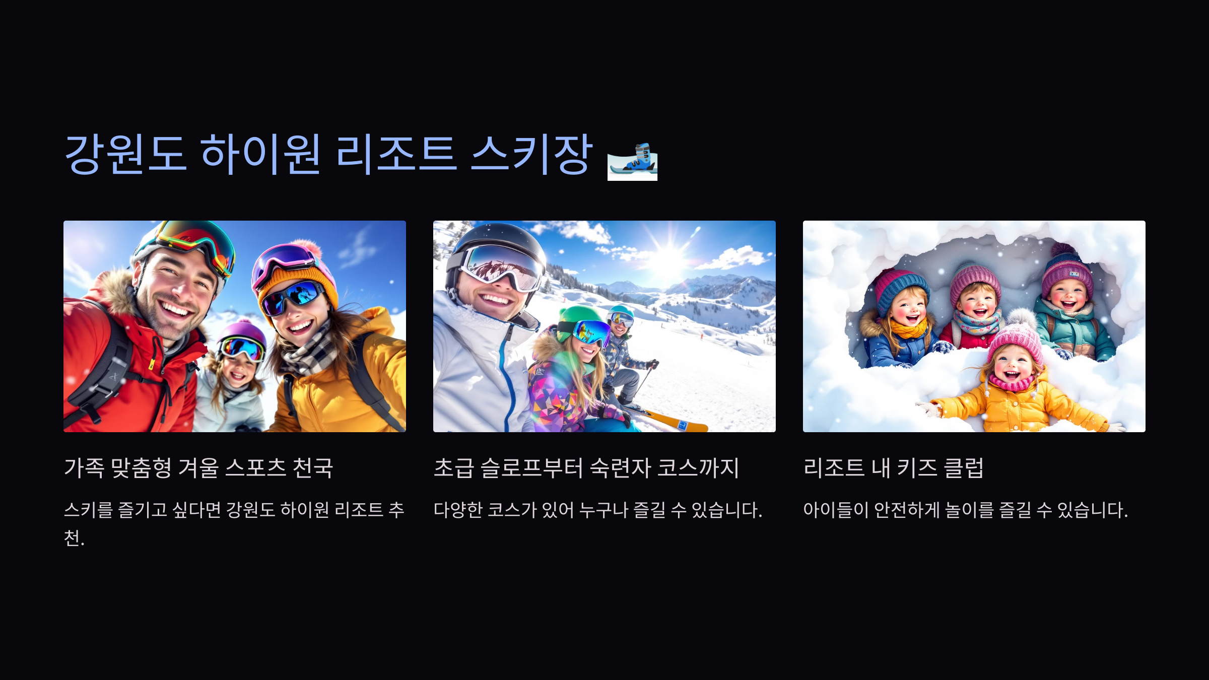 가족 맞춤형 겨울 스포츠 천국