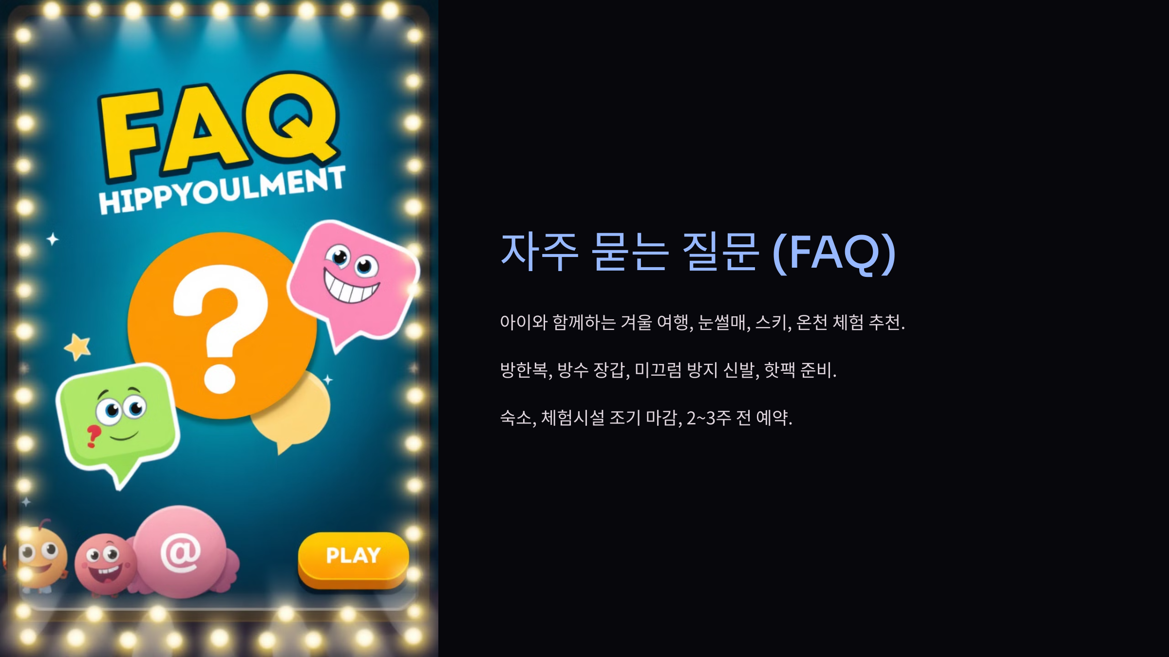 - 숙박 예약은 미리!: 인기 명소는 겨울방학 시즌에 금방 만석이 됩니다.