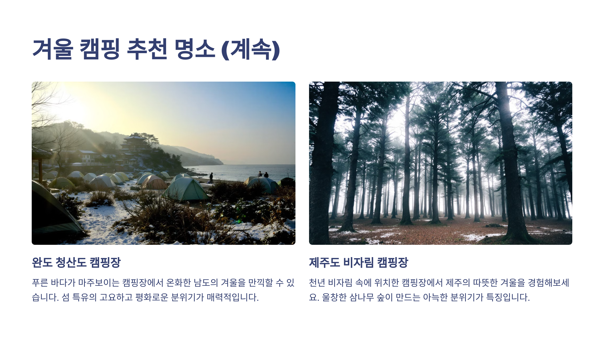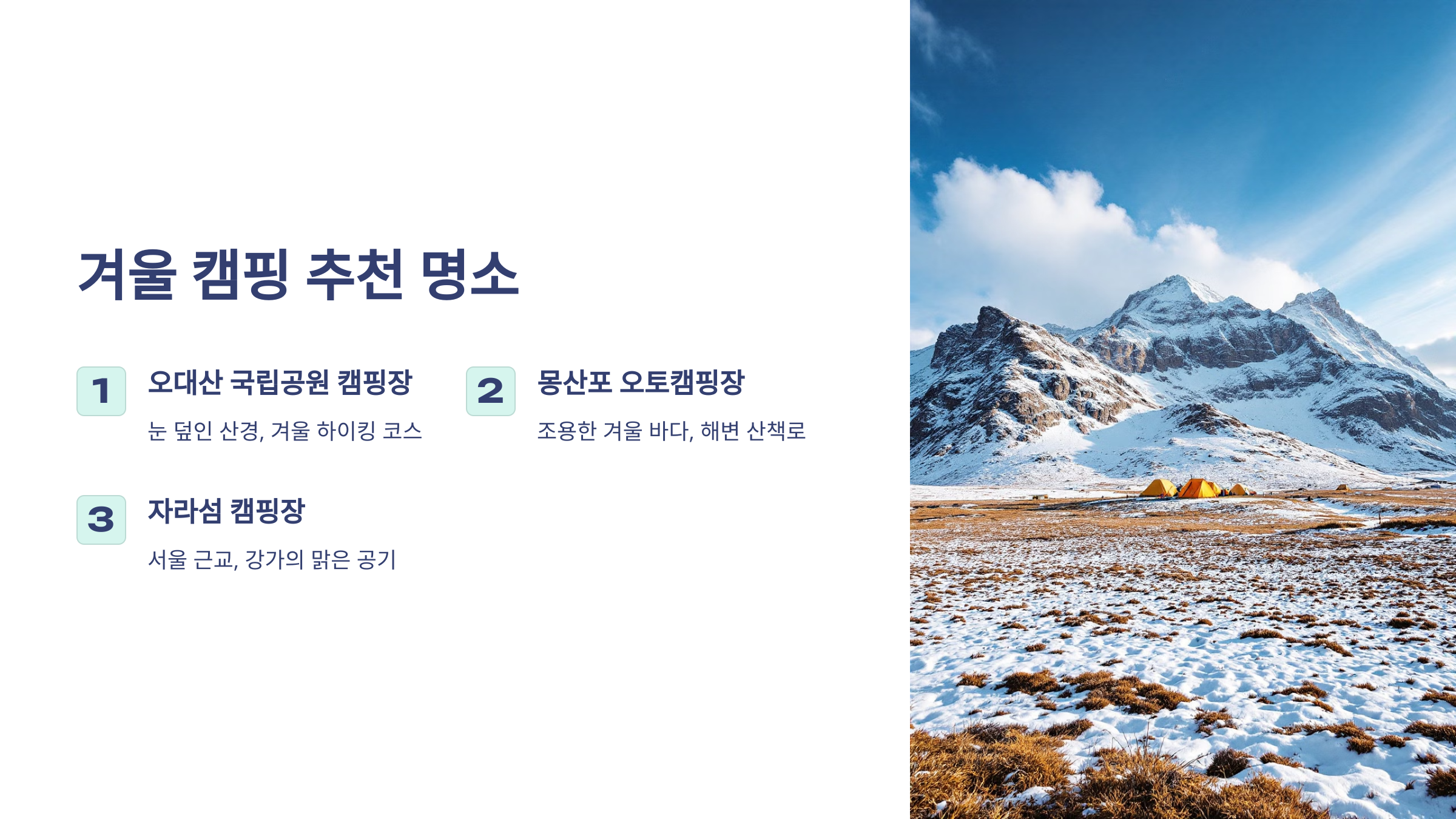 1. 겨울 캠핑 추천 명소 TOP 5 🌲