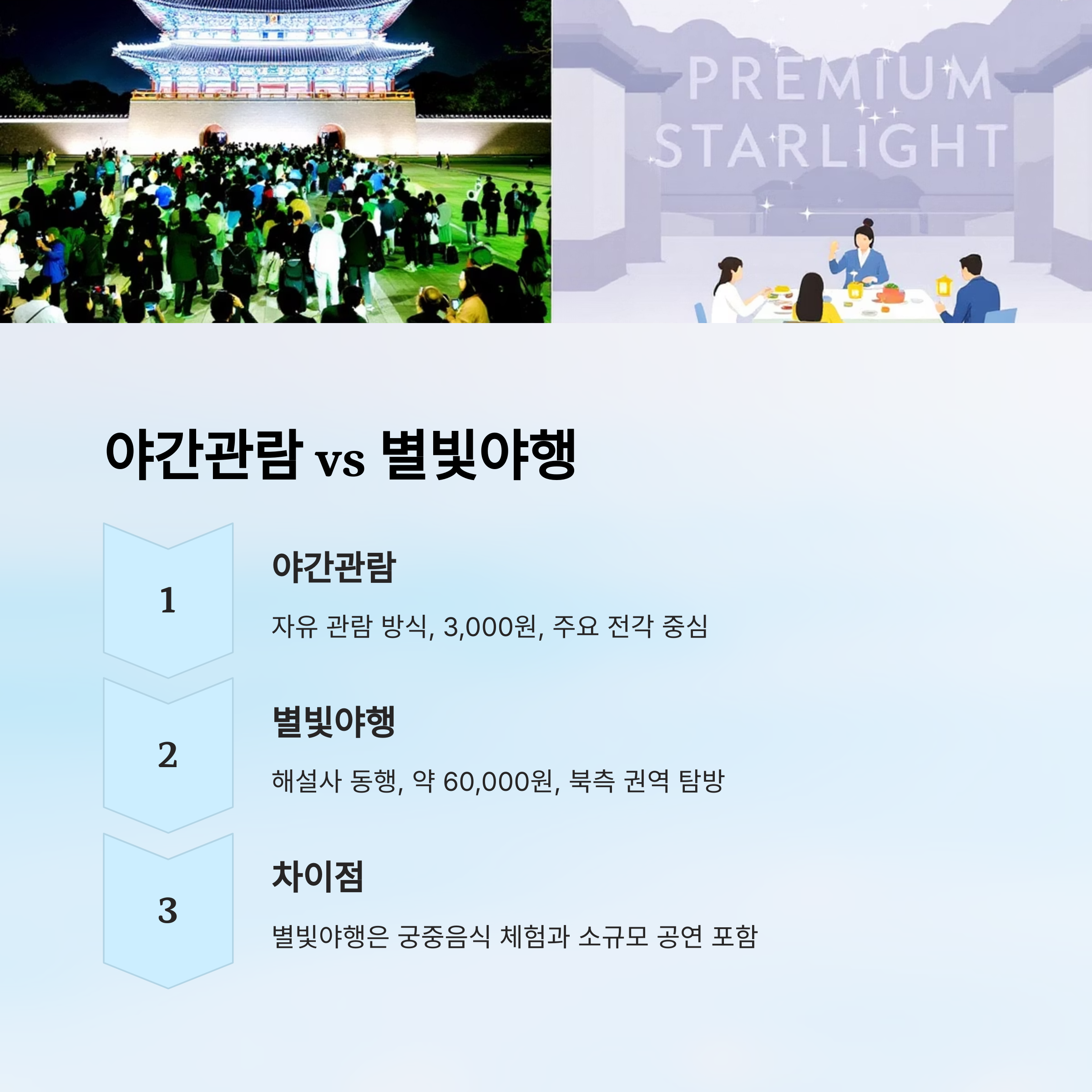 🌟 야간관람 vs 별빛야행 비교표