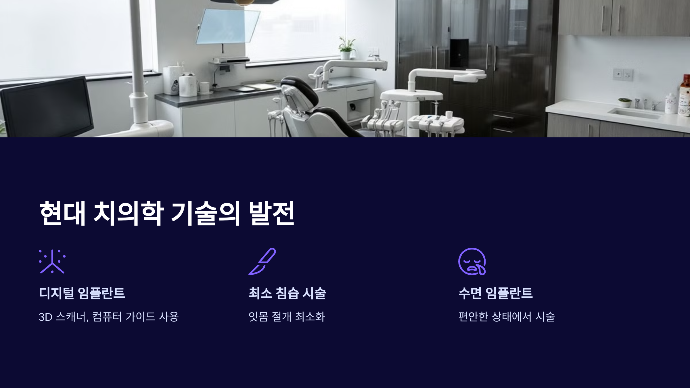 - 최소 침습 시술: 잇몸 절개를 최소화해 고령자에게도 부담 없는 치료가 가능합니다.