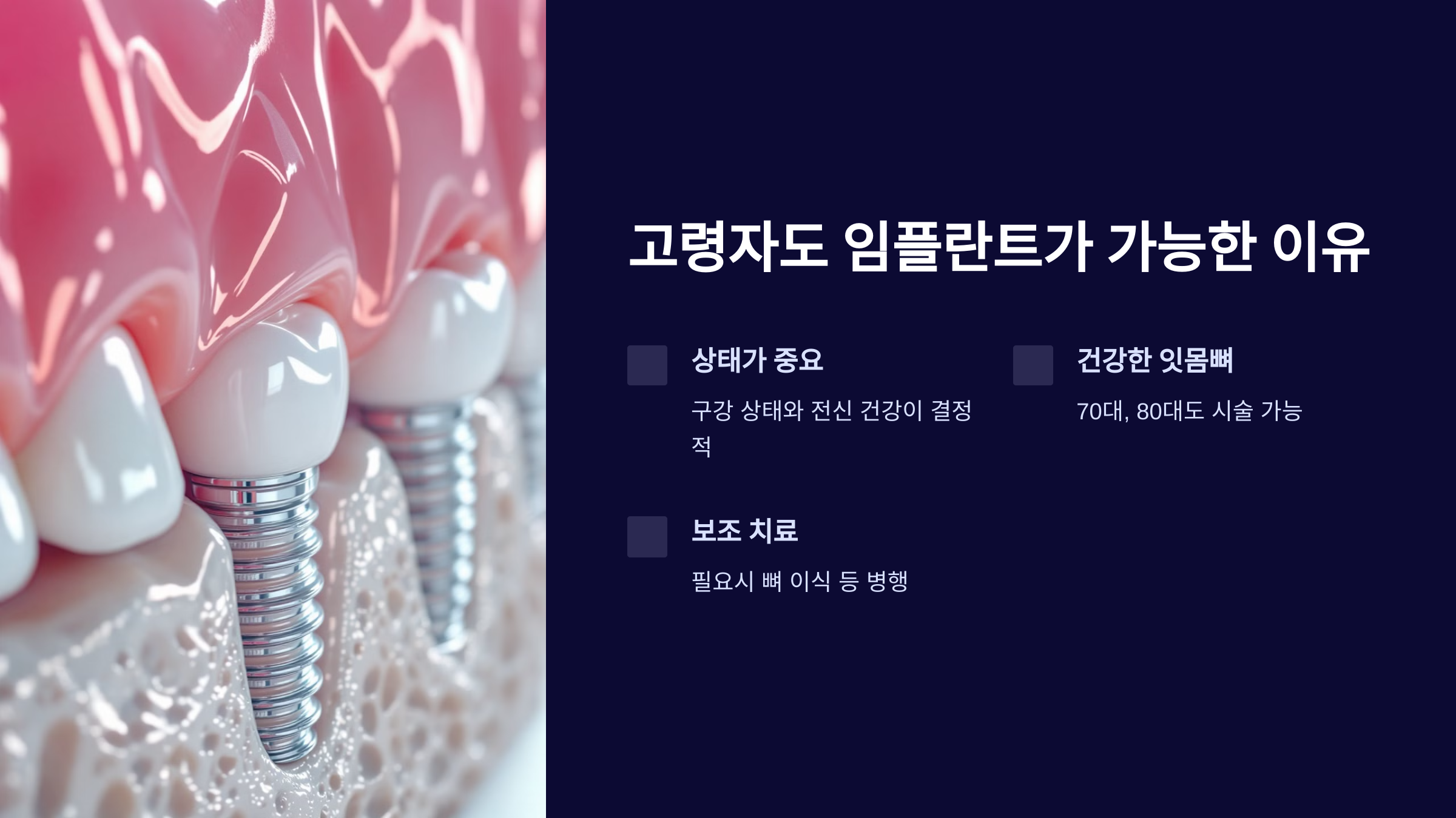 1️⃣ 임플란트는 나이가 아닌 '상태'가 중요하다