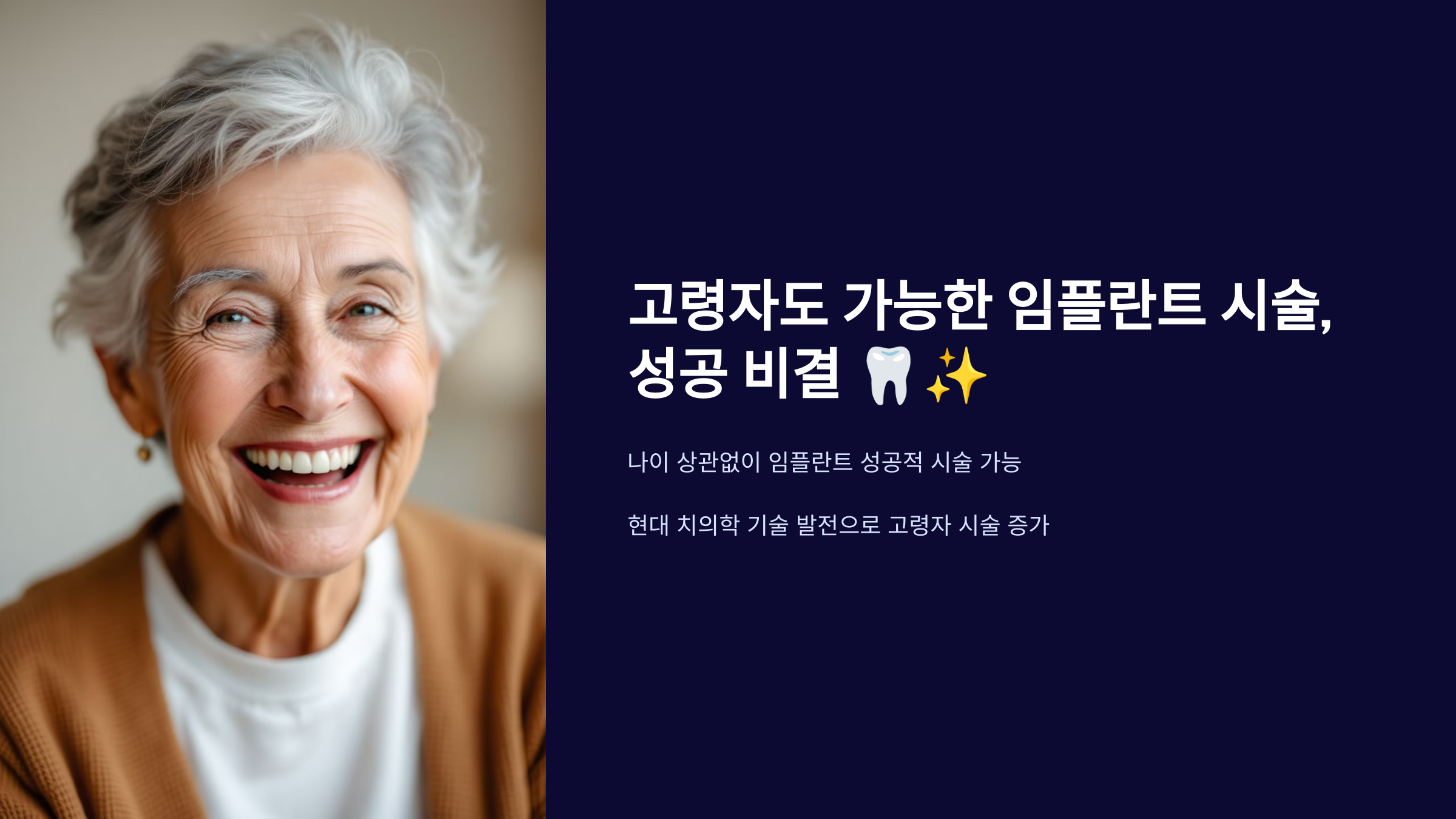 고령자라면 임플란트 시술이 어렵거나 불가능하다고 생각하시는 분들이 많습니다. 하지만 현대 치의학 기술 덕분에 나이에 상관없이 임플란트를 성공적으로 시술받는 사례가 늘어나고 있습니다. 💡 오늘은 고령자도 임플란트 시술이 가능한 이유와 성공적인 치료를 위한 비결을 알아보겠습니다! 😊