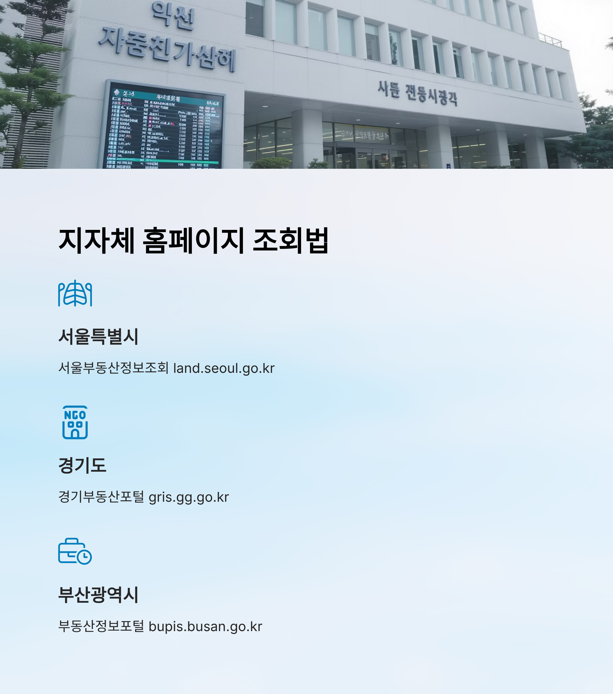 특히 서울시는 ‘서울부동산정보조회시스템(https://land.seoul.go.kr/)’을 통해 구 전체 토지를 조회할 수 있고, 경기도는 ‘경기부동산포털’을 별도로 운영 중이에요. 이처럼 지역마다 시스템이 다양하니, 주소지를 기준으로 선택하면 좋아요 😊