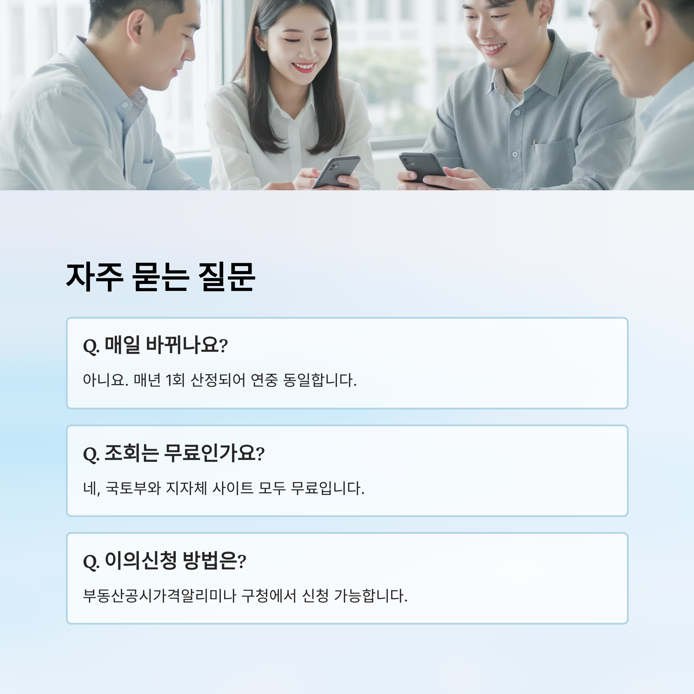 A3. 국토교통부 부동산공시가격알리미 또는 시·군·구청 민원실에서 신청할 수 있어요.