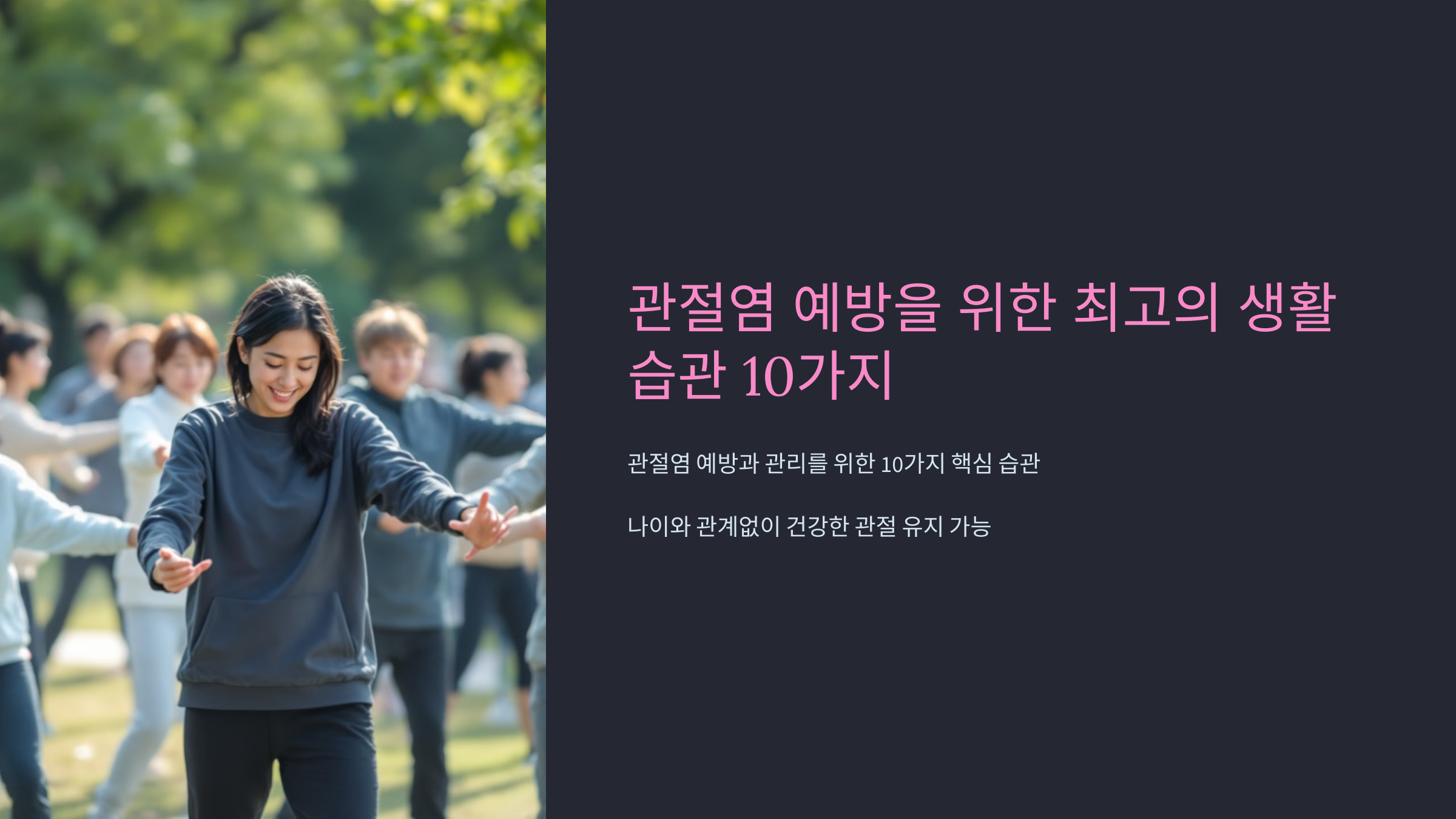 관절염은 나이가 들수록 누구나 겪을 수 있는 건강 문제 중 하나입니다. 하지만 적절한 생활 습관을 통해 관절염을 예방하고 관절 건강을 유지할 수 있습니다. 지금부터 소개하는 10가지 습관을 실천하면 관절염의 위험을 줄이고 활기찬 생활을 유지할 수 있습니다.