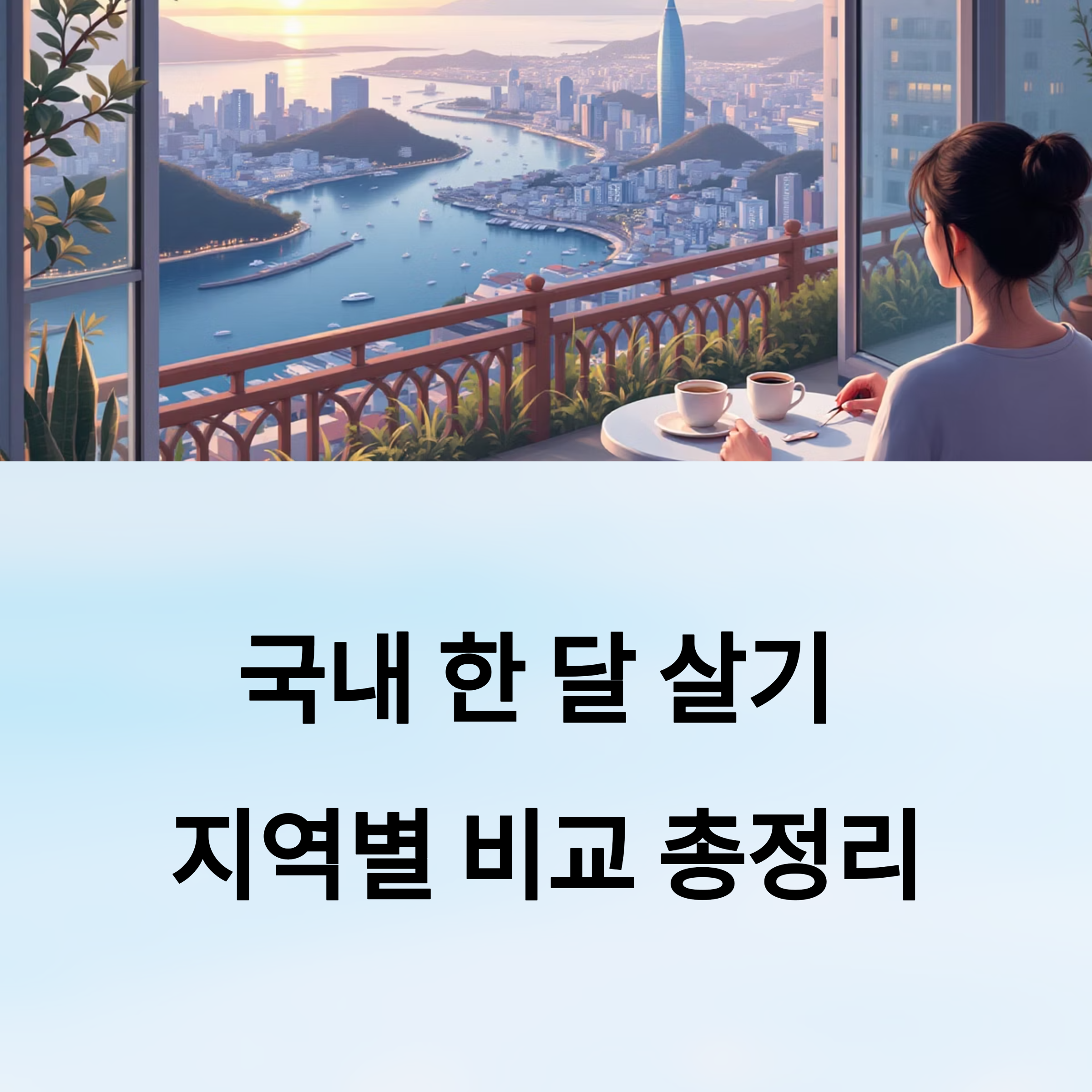지금부터 국내 주요 도시 6곳의 한 달 살기 장단점을 꼼꼼하게 정리해볼게요. 거주 비용, 숙소 환경, 근처 편의시설, 분위기 등 실제 살아보는 듯한 느낌으로 풀어드릴게요. 😊