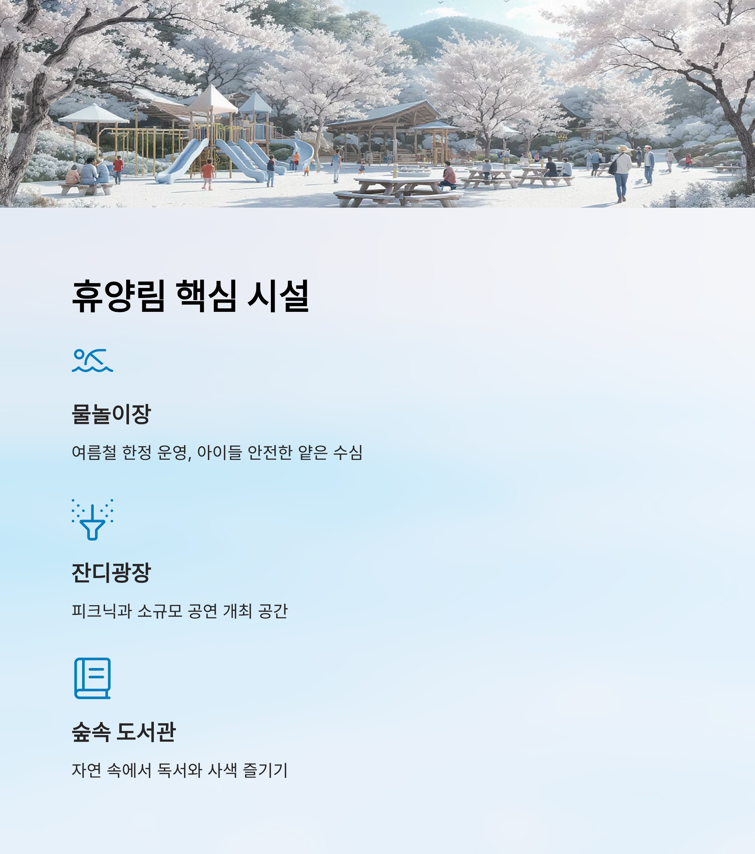 | 물놀이장 | 여름 한정 운영, 얕은 수심 | 아이 동반 가족 |