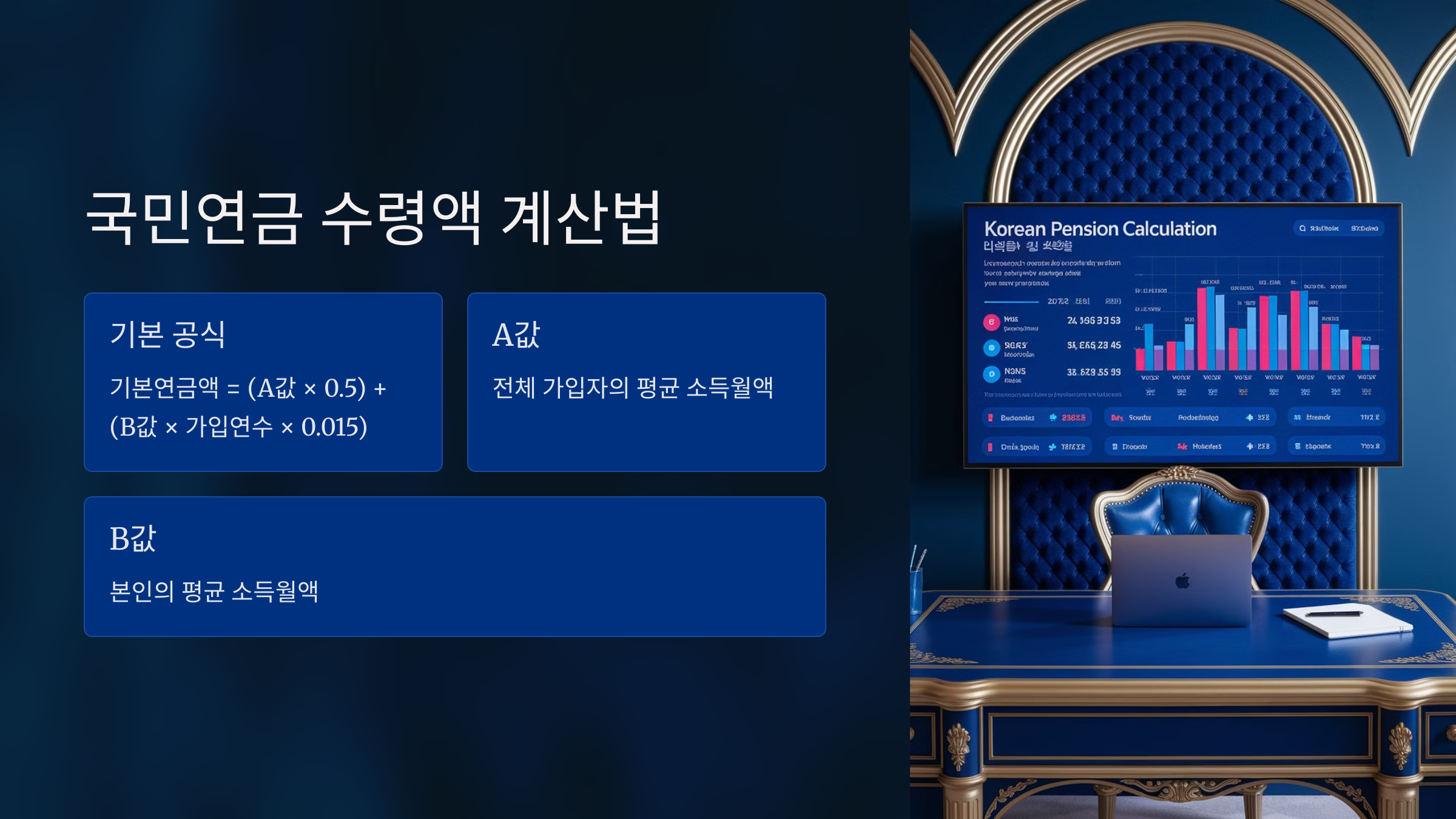 국민연금 수령액은 간단한 공식으로 계산할 수 있어요. 기본적으로 가입 기간, 평균 소득, 연금 지급률 등을 고려해서 결정돼요.