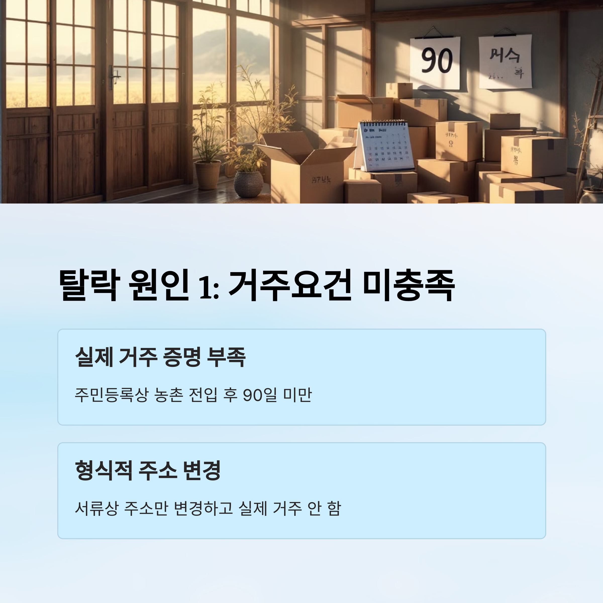 하지만 아직도 ‘주소만 농촌’으로 옮기고, 실제 생활은 도시에서 하는 분들이 많아요. 이런 경우 현장 확인에서 바로 걸려서 보조금이 감액되거나 탈락 처리돼요. 🧾