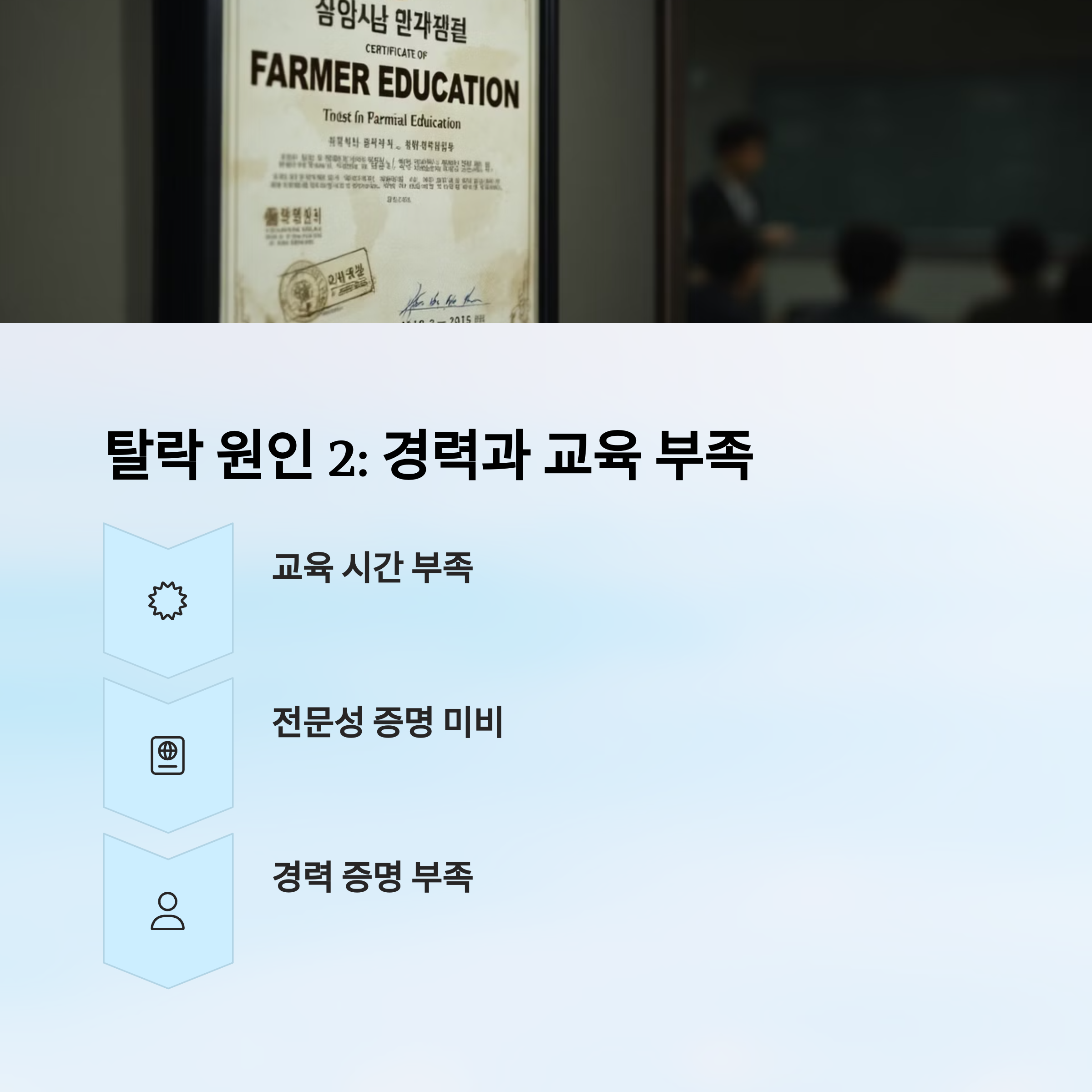 또한 교육을 받았더라도, 내용이 내가 하려는 작목이나 업종과 전혀 연관 없는 경우에는 점수가 낮게 나올 수 있어요. 예를 들어 축산업을 하려는 분이 도시텃밭 교육만 받은 경우도 탈락 사례로 나왔어요.