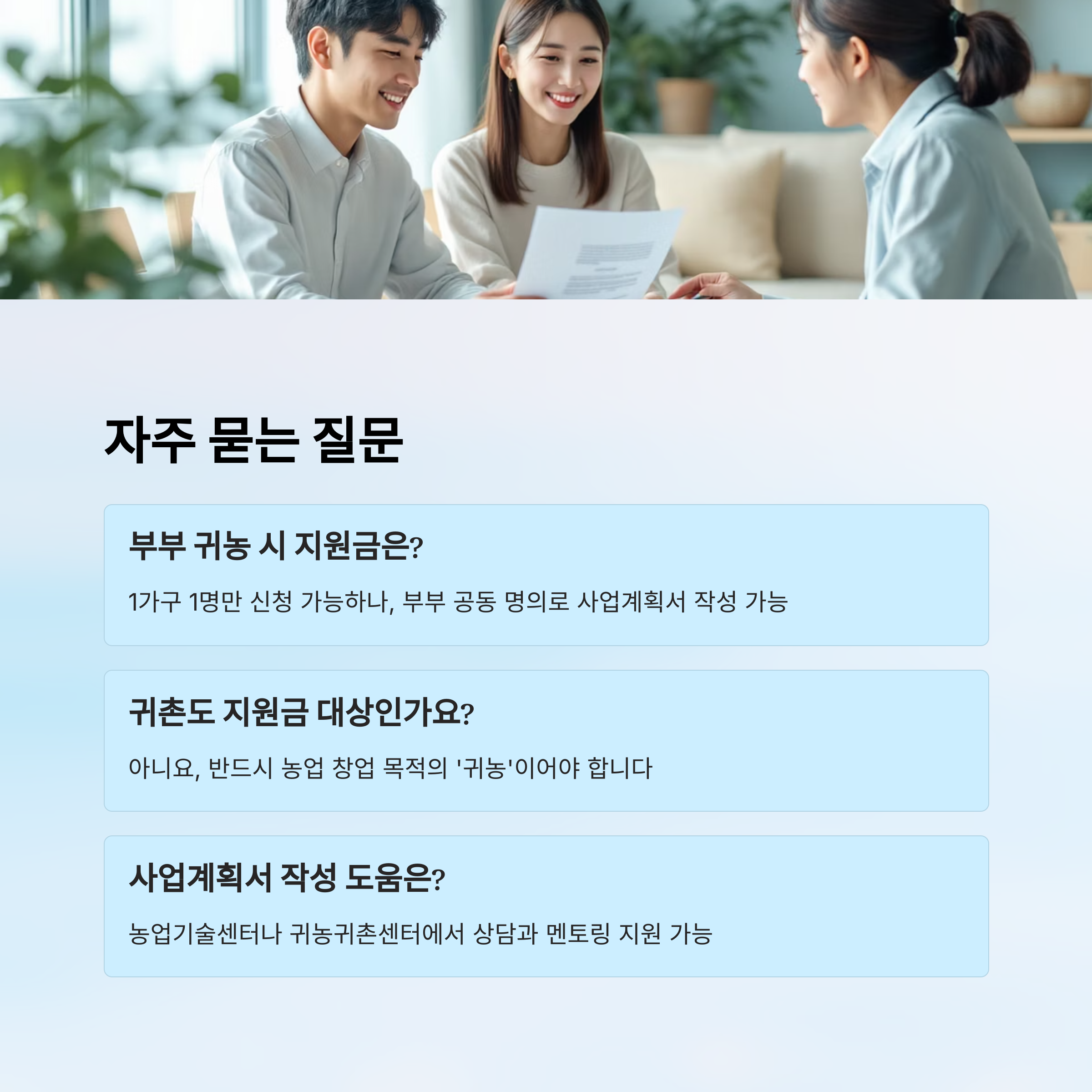 Q5. 부부가 함께 귀농할 경우, 두 사람 다 지원 받을 수 있나요?