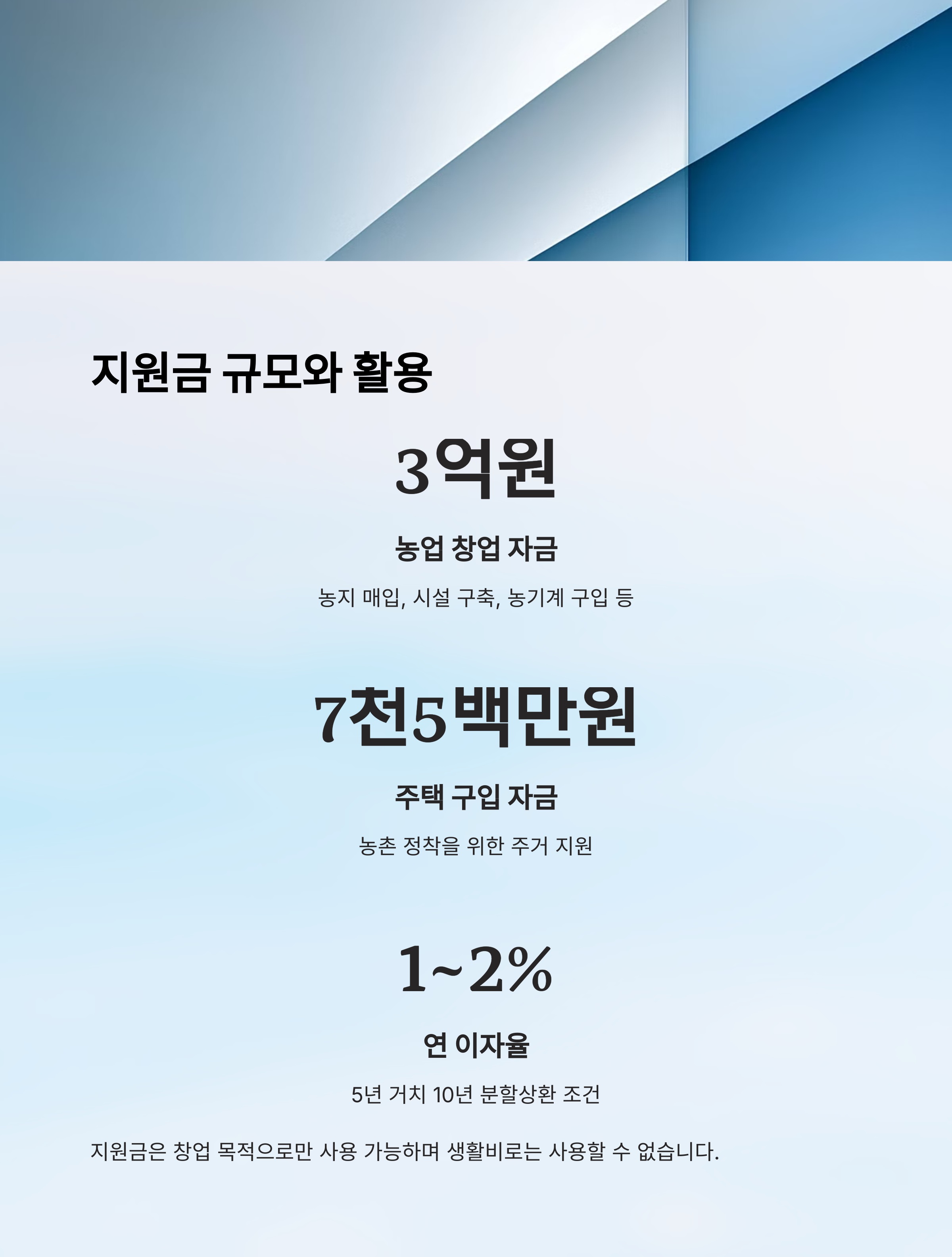 이 자금은 단순한 생활비가 아니라 ‘창업 목적’으로만 사용할 수 있어요. 예를 들어 농지 매입, 비닐하우스 설치, 농기계 구입, 가공 시설 설비 같은 항목이 해당돼요. 또한 농산물 유통, 브랜드 마케팅 비용에도 일부 사용할 수 있답니다.
