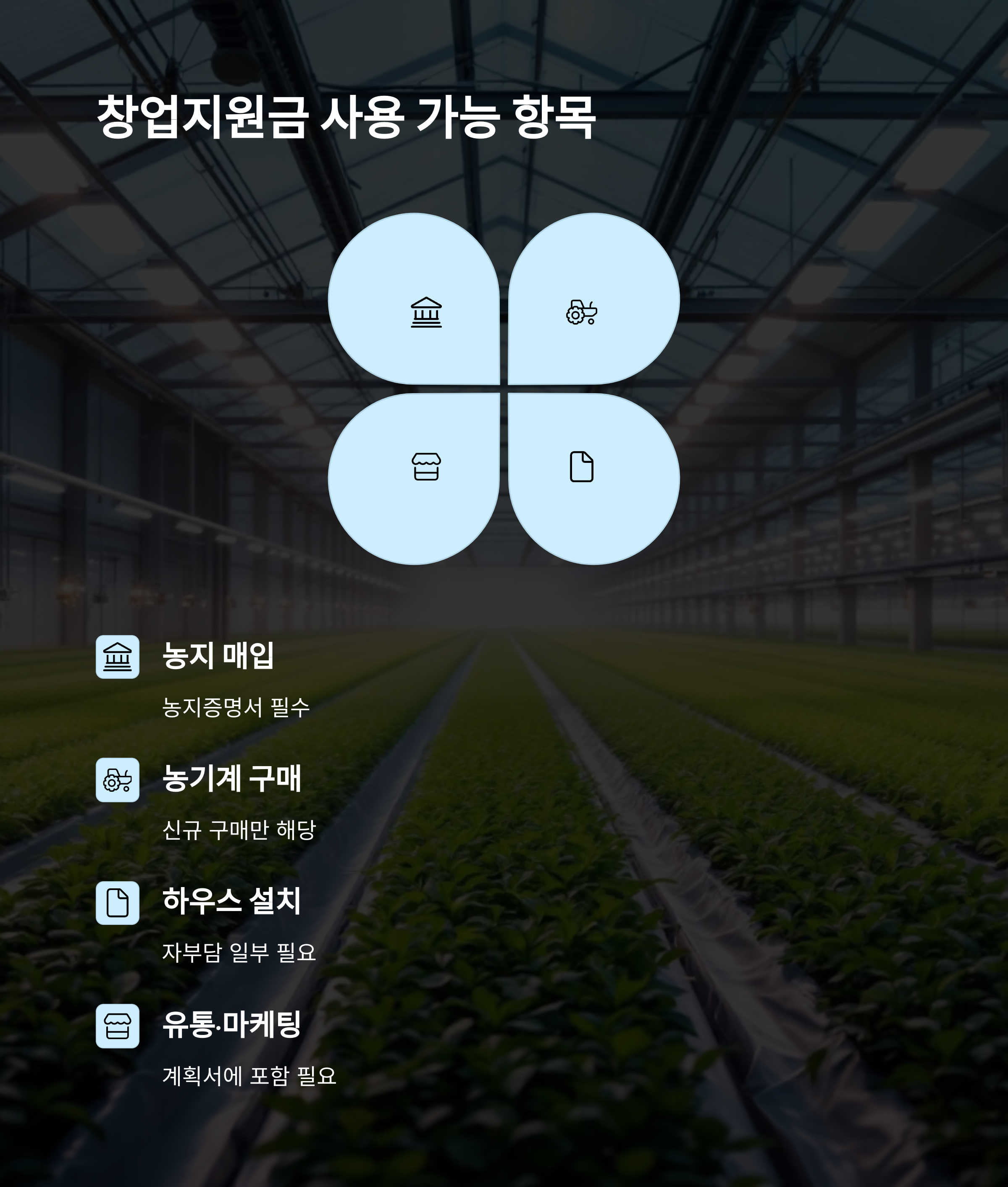 | 사업계획서 | 농업창업계획서 제출 필요 |