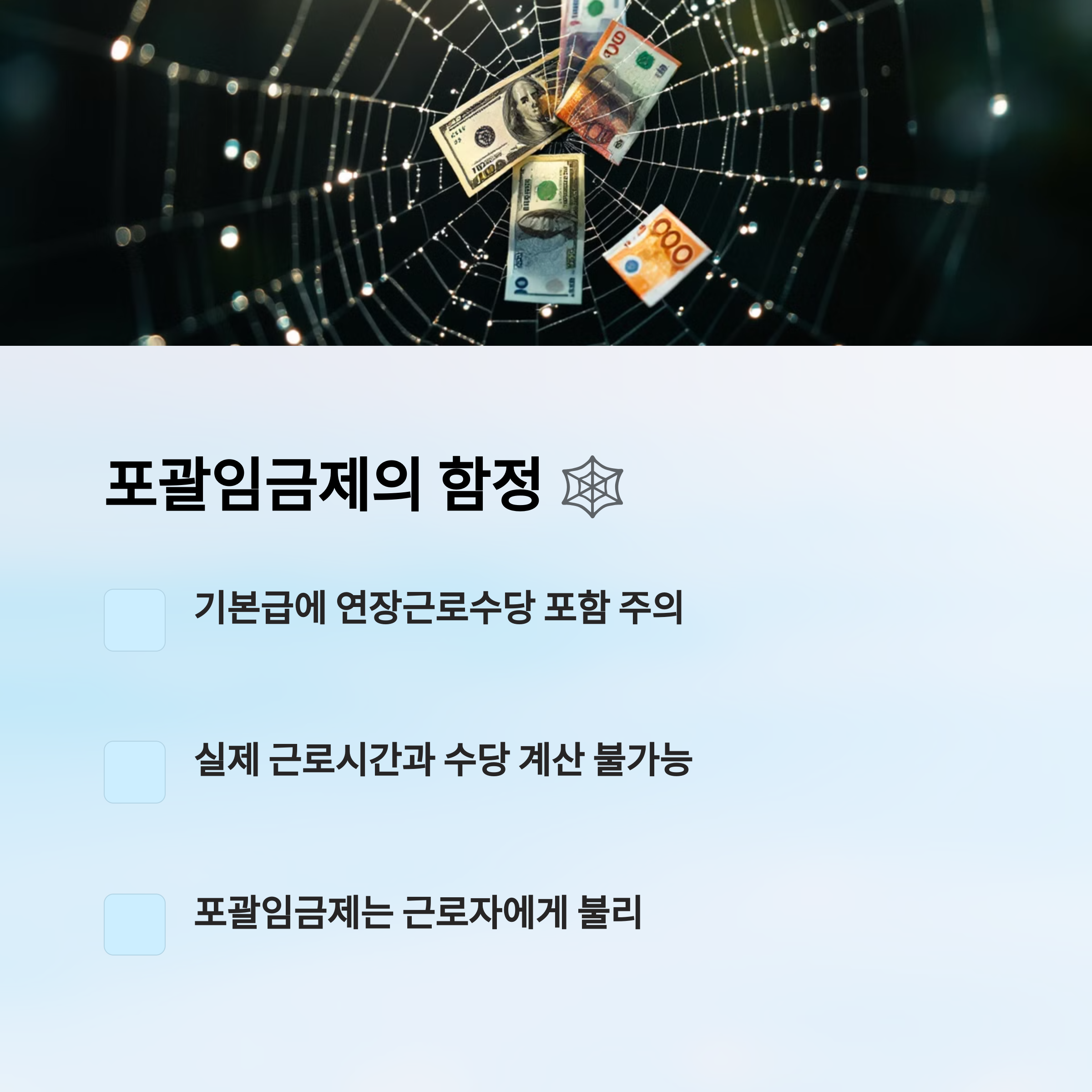 포괄임금제는 잘 쓰면 편리하지만, 악용되면 착취가 될 수 있어요. 만약 계약서에서 이런 조항을 본다면, 꼭 "수당 항목을 세부적으로 명시해 주세요"라고 요구해 보세요. 정당한 요구니까요!📣