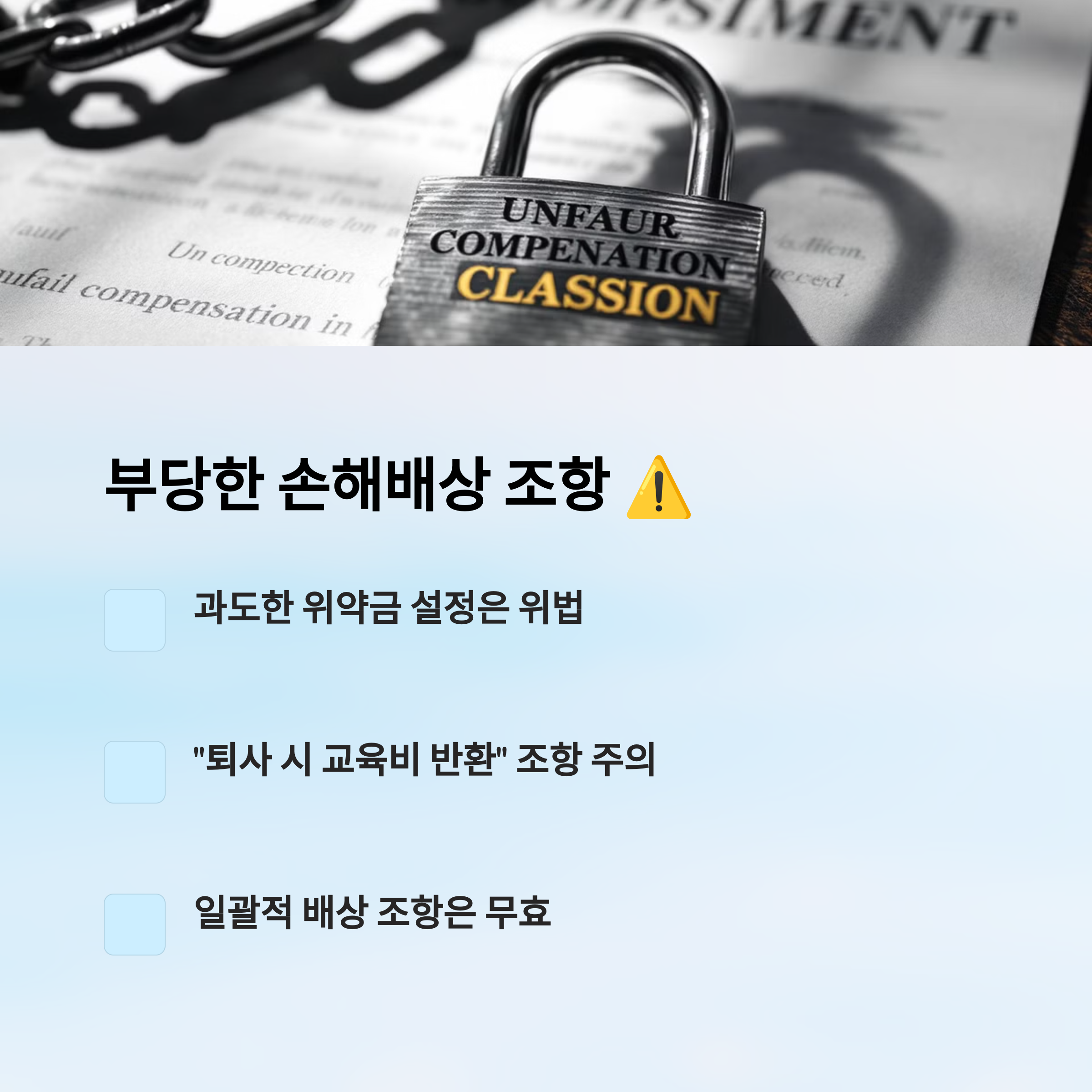 또 하나 주의할 건, ‘퇴사 시 일정 금액을 배상한다’는 식의 조항이에요. 예를 들어 “1년 이내 퇴사 시 교육비를 반환한다” 같은 내용인데, 이 역시 법적으로는 엄격한 조건이 있어야만 유효해요. 교육 내용이 업무와 직접 관련 있고, 실제로 돈이 지급되었다는 증거가 있어야 해요.