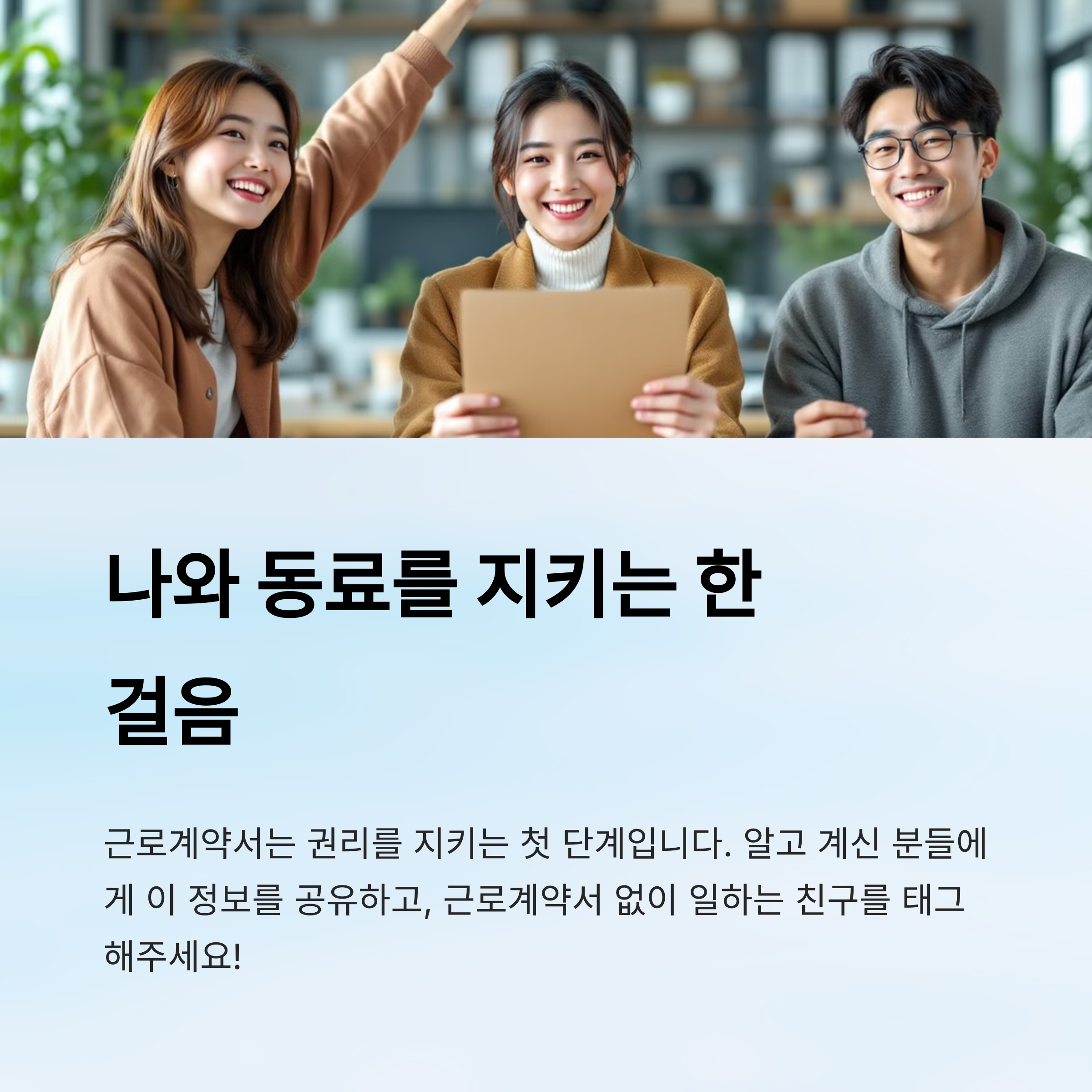 오늘 설명한 내용들은 실제로 많은 근로자들이 겪는 현실이에요. 작더라도 계약서 한 장이 나를 지켜준다는 점, 절대 잊지 마세요!