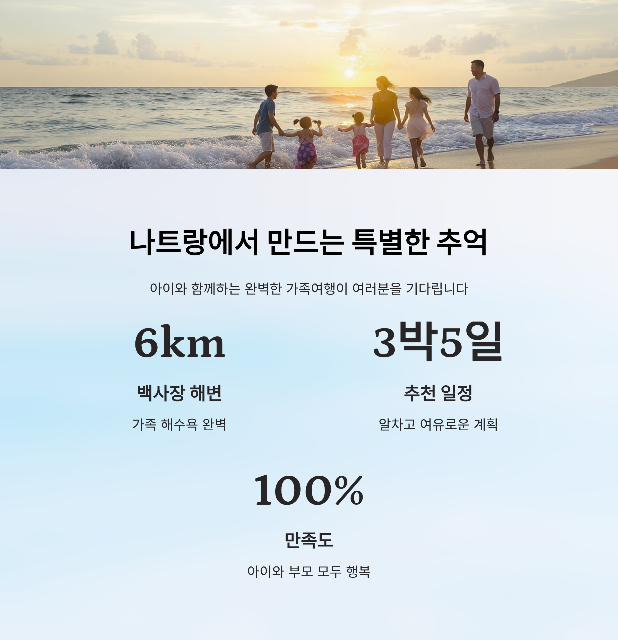 나트랑은 휴양과 관광, 체험이 모두 가능한 매력적인 여행지라 가족과 함께라면 일정 구성이 더욱 중요해요. 3박5일 동안 아이와 부모가 모두 즐길 수 있도록 균형 잡힌 계획을 세우면 피로감 없이 알차게 여행할 수 있답니다.