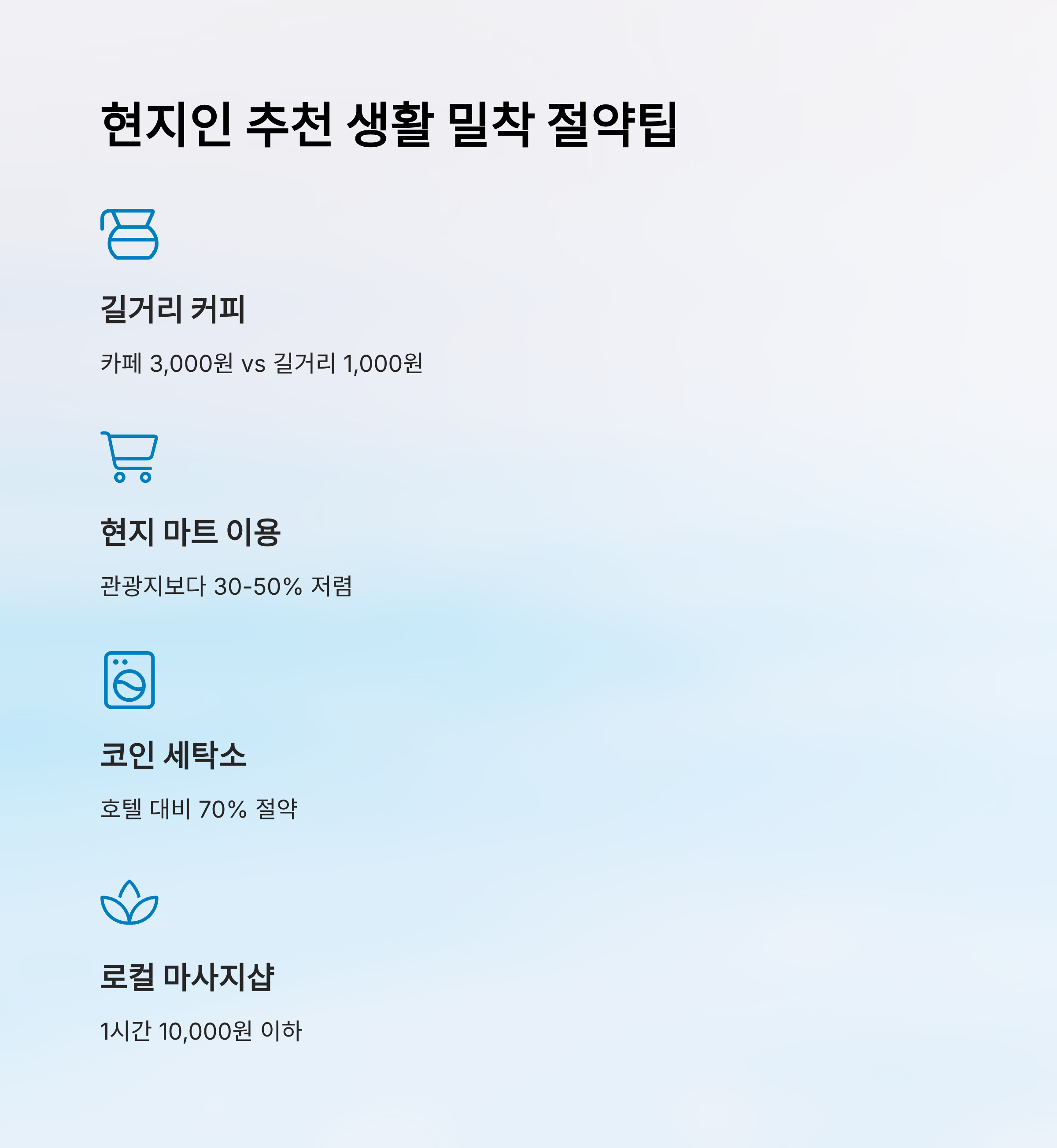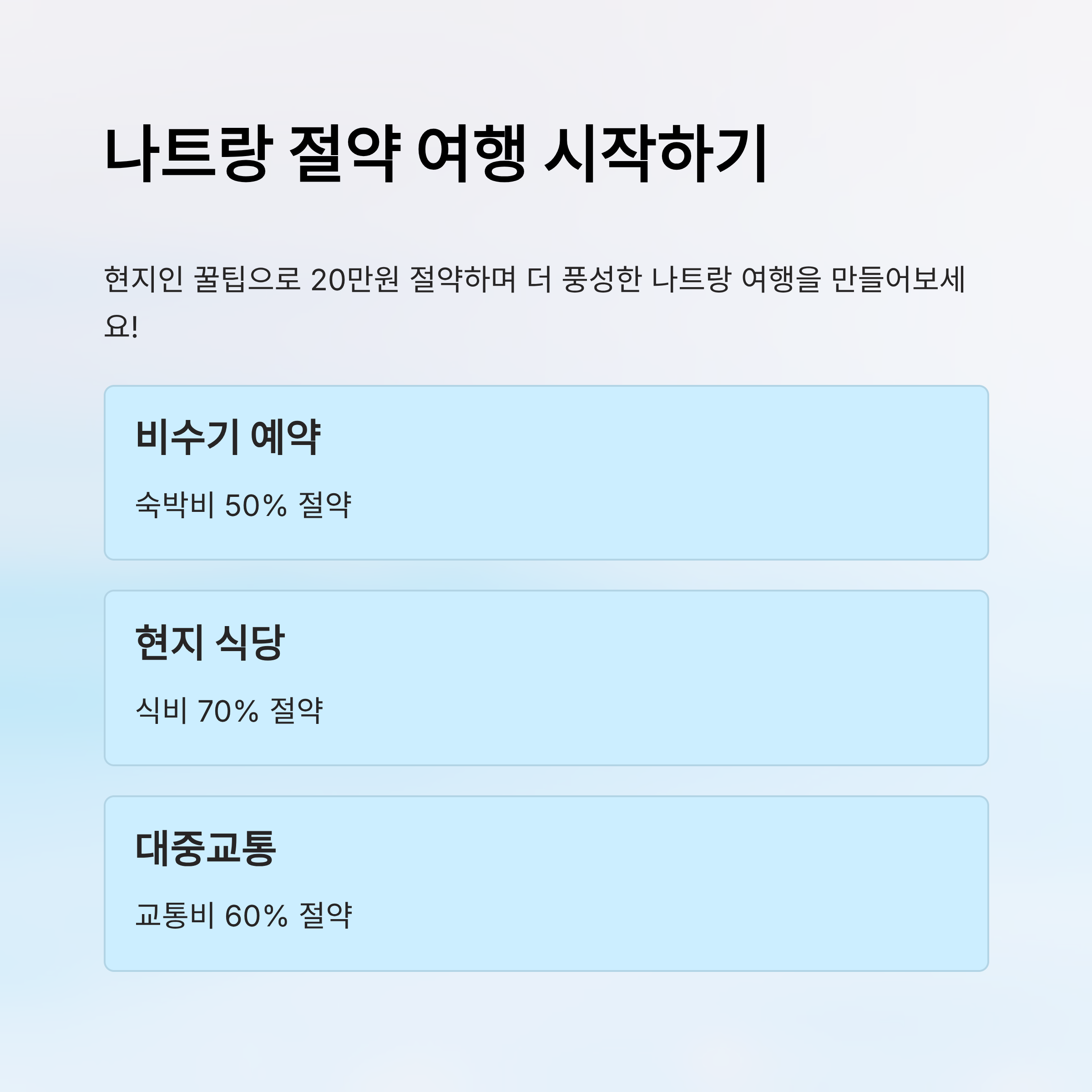 여행자에게 가장 큰 차이를 만드는 건 작은 생활 속 절약이에요. 나트랑 현지인들이 실제로 쓰는 방법을 따라 하면 여행 경비를 20만 원 이상 줄이는 것도 충분히 가능하답니다. 제가 생각했을 때 이 부분이야말로 가성비 여행의 핵심이에요. 💡