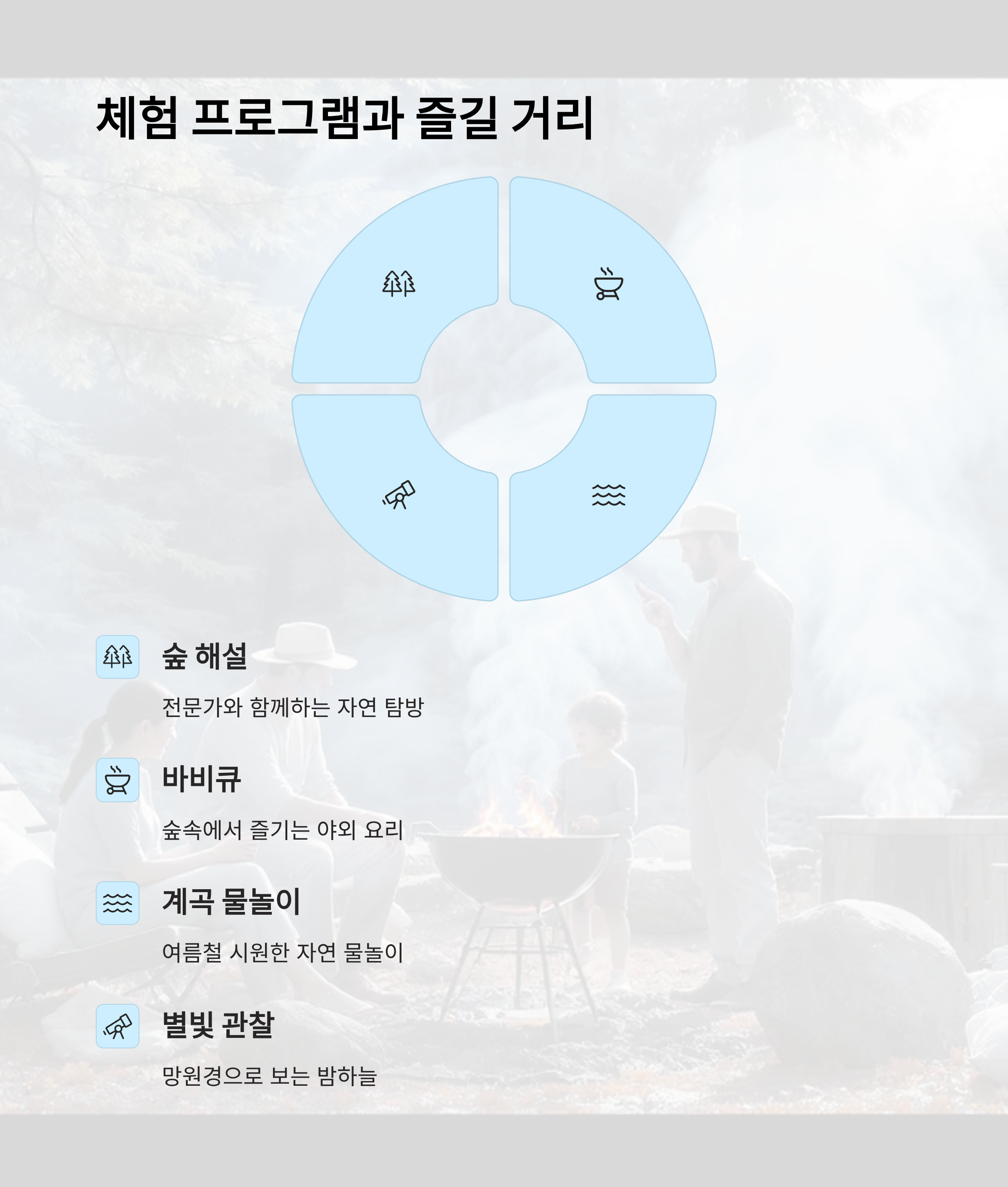 | 숲 치유 | 명상, 요가, 호흡법 | 봄, 가을 | 성인 |