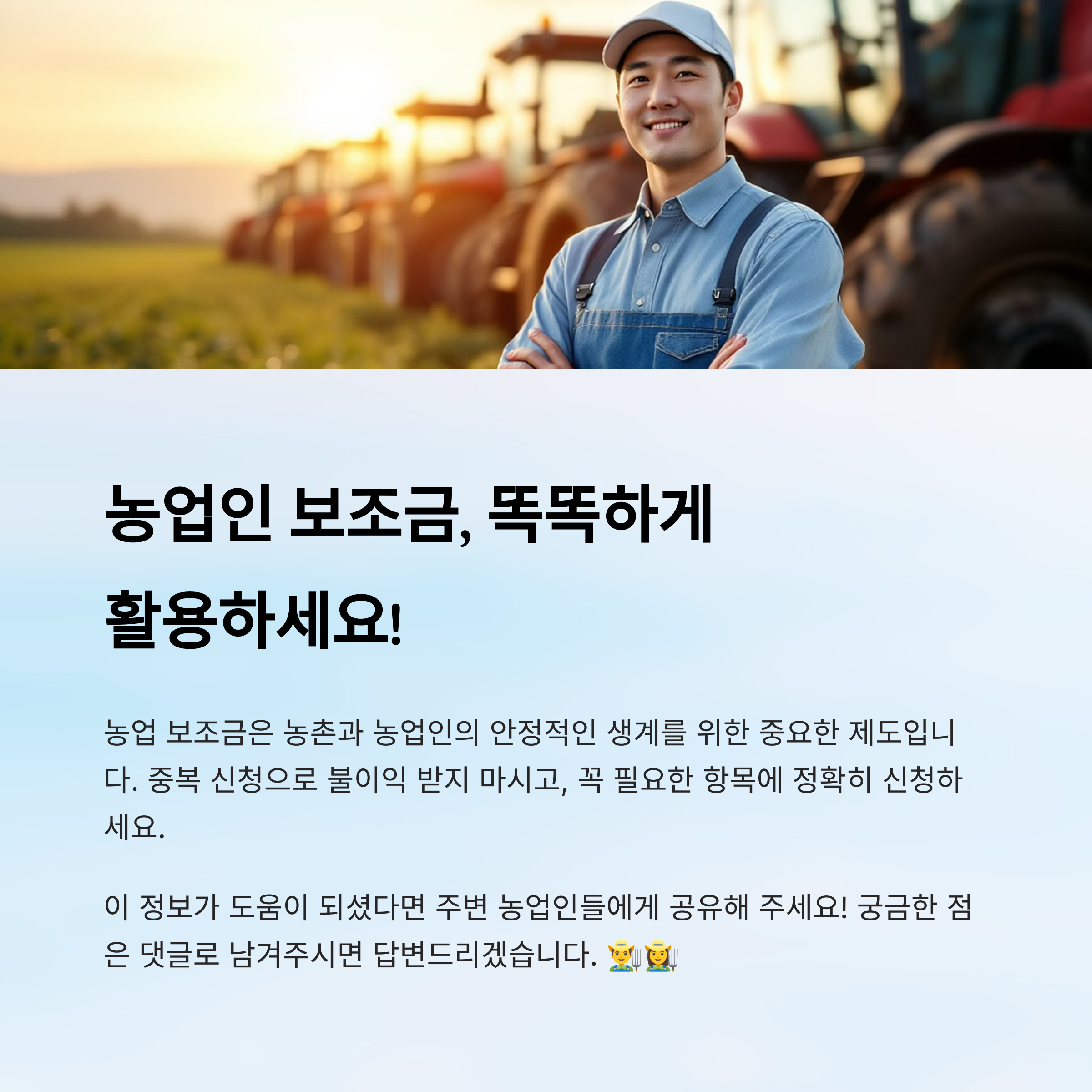 저는 이런 보조금 제도가 단순한 돈 나눔이 아니라, 농업 생태계를 지탱하는 중요한 기반이라고 생각했어요. 하지만 이런 혜택을 많은 이들이 공평하게 누리기 위해선 ‘중복 수급 금지’라는 원칙이 정말 중요하답니다.