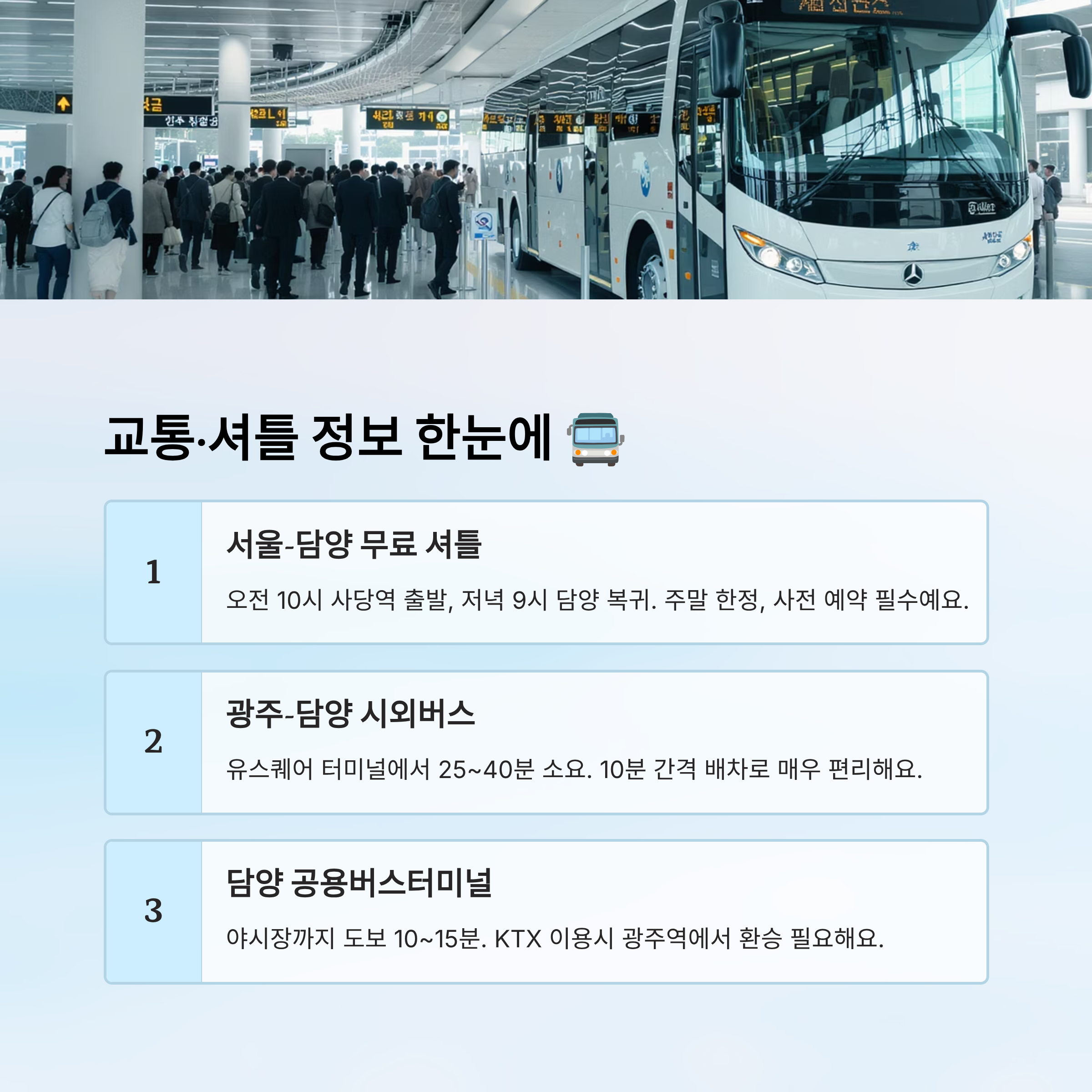 교통·셔틀 정보 한눈에 🚍
