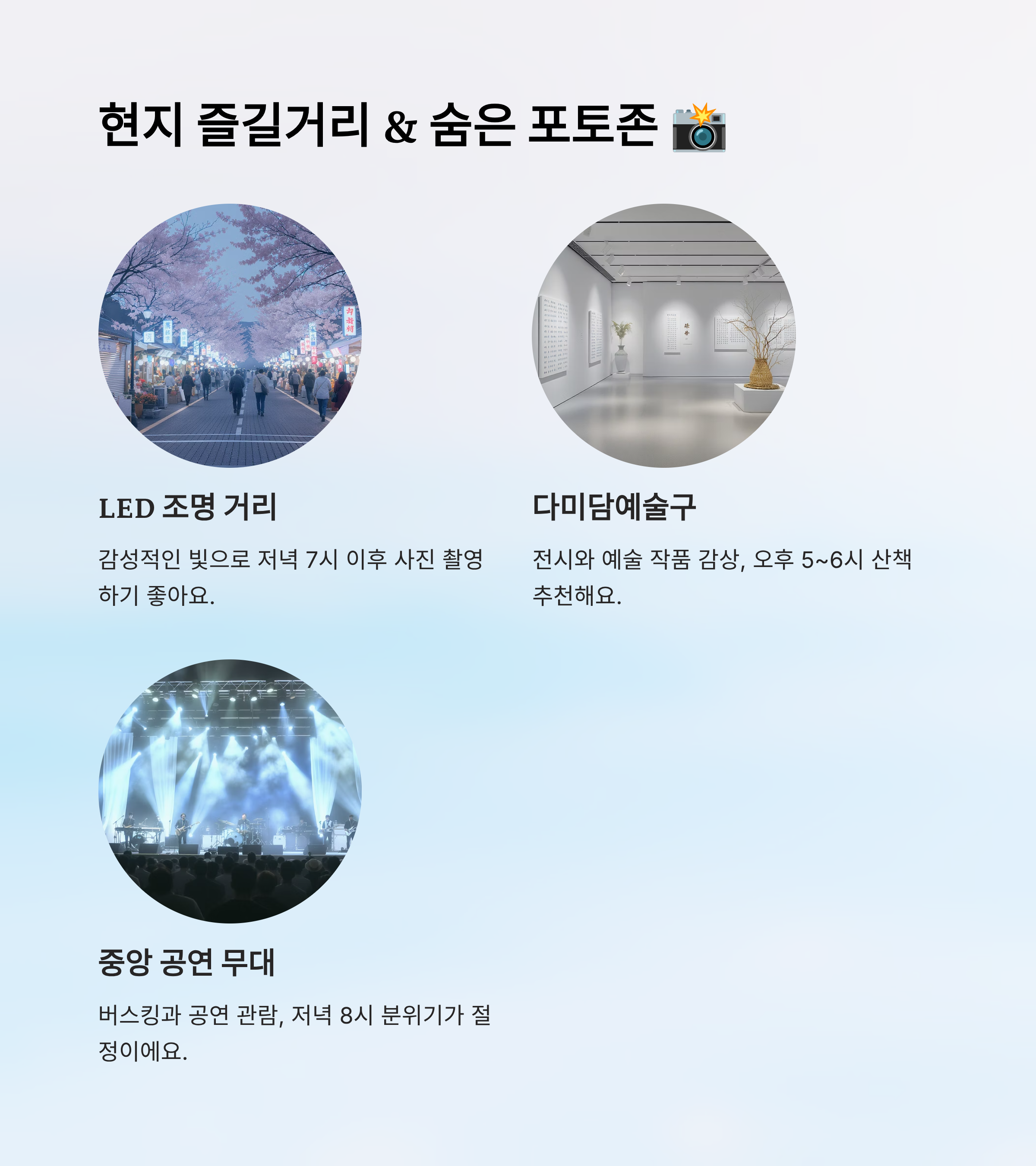 현지 즐길거리 & 숨은 포토존 📸
