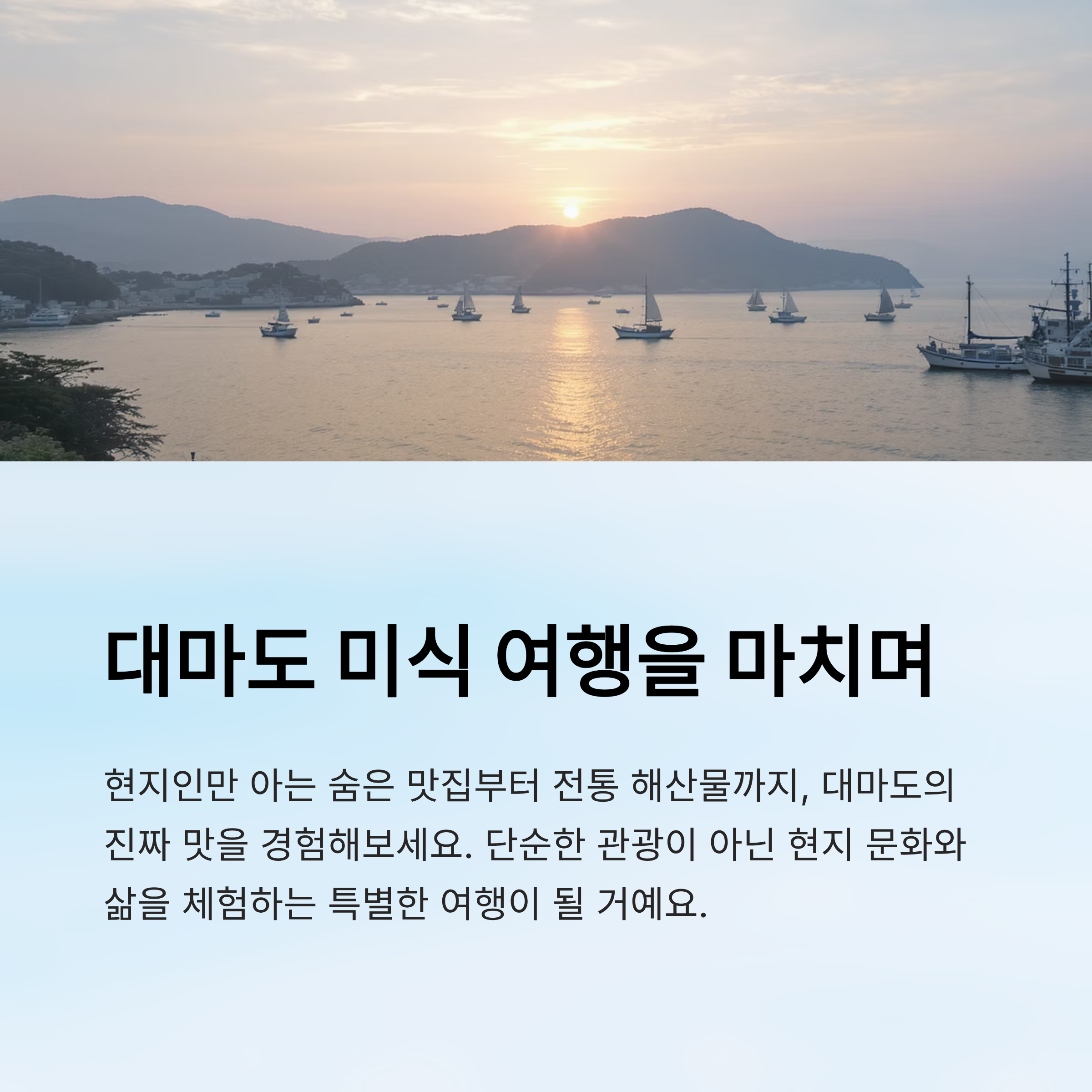 둘째 날 여정을 마치고 나면 대마도가 가진 잔잔한 매력과 깊은 미식 세계를 동시에 느낄 수 있어요. 이틀 동안의 여정을 통해 현지인들이 사랑하는 맛을 경험하고, 섬의 풍경과 문화를 오롯이 체험할 수 있답니다. 🏝️