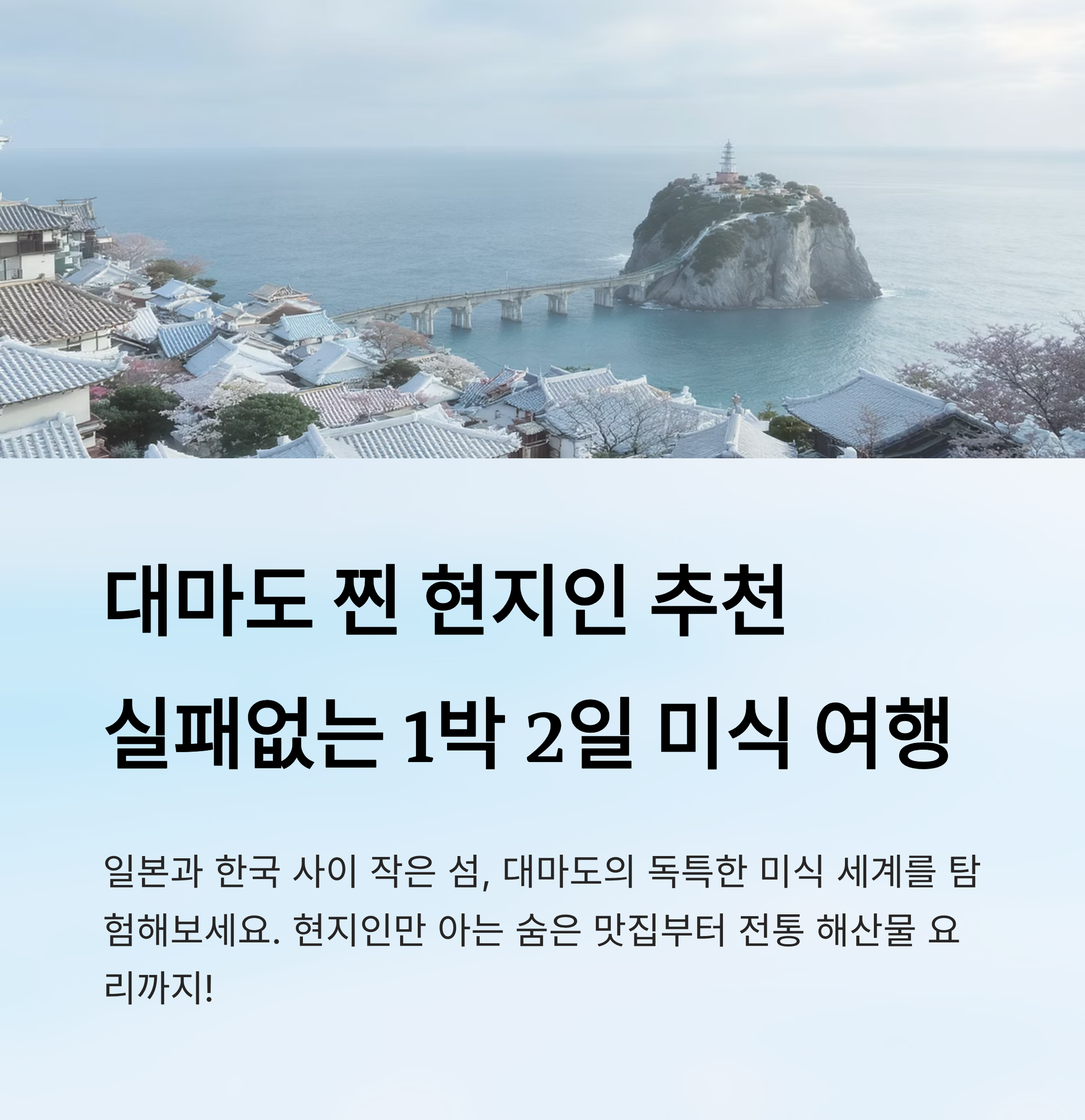 둘째 날 여정을 마치고 나면 대마도가 가진 잔잔한 매력과 깊은 미식 세계를 동시에 느낄 수 있어요. 이틀 동안의 여정을 통해 현지인들이 사랑하는 맛을 경험하고, 섬의 풍경과 문화를 오롯이 체험할 수 있답니다. 🏝️