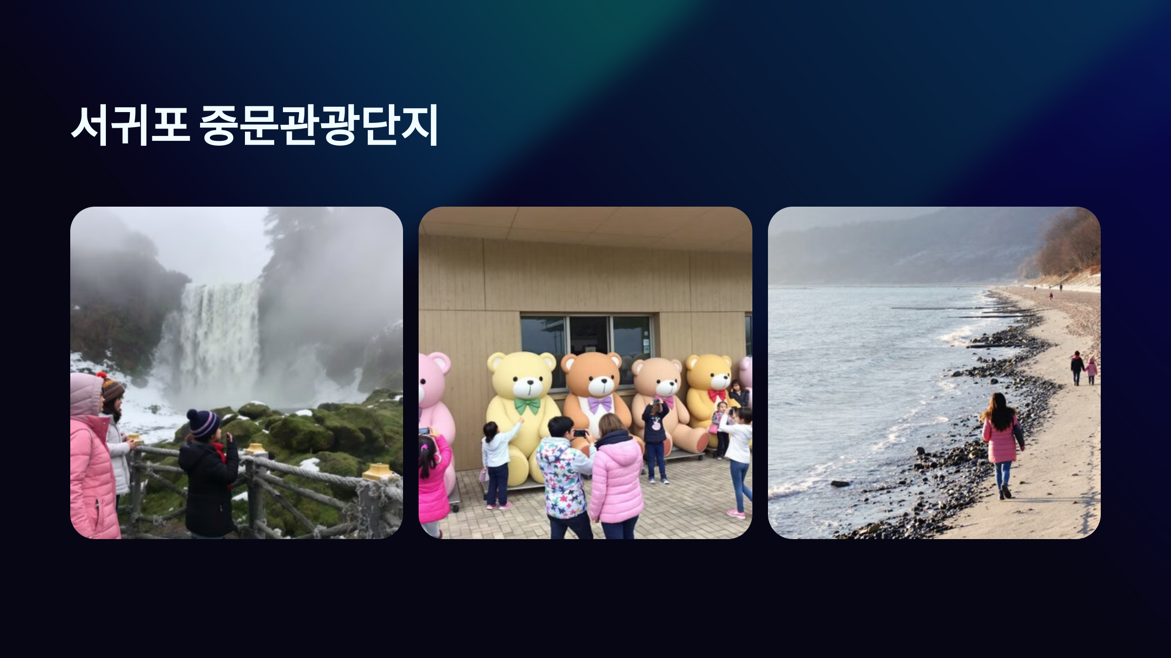 - 천지연폭포: 제주도의 대표 폭포 중 하나로, 겨울에도 그 아름다움은 여전합니다.