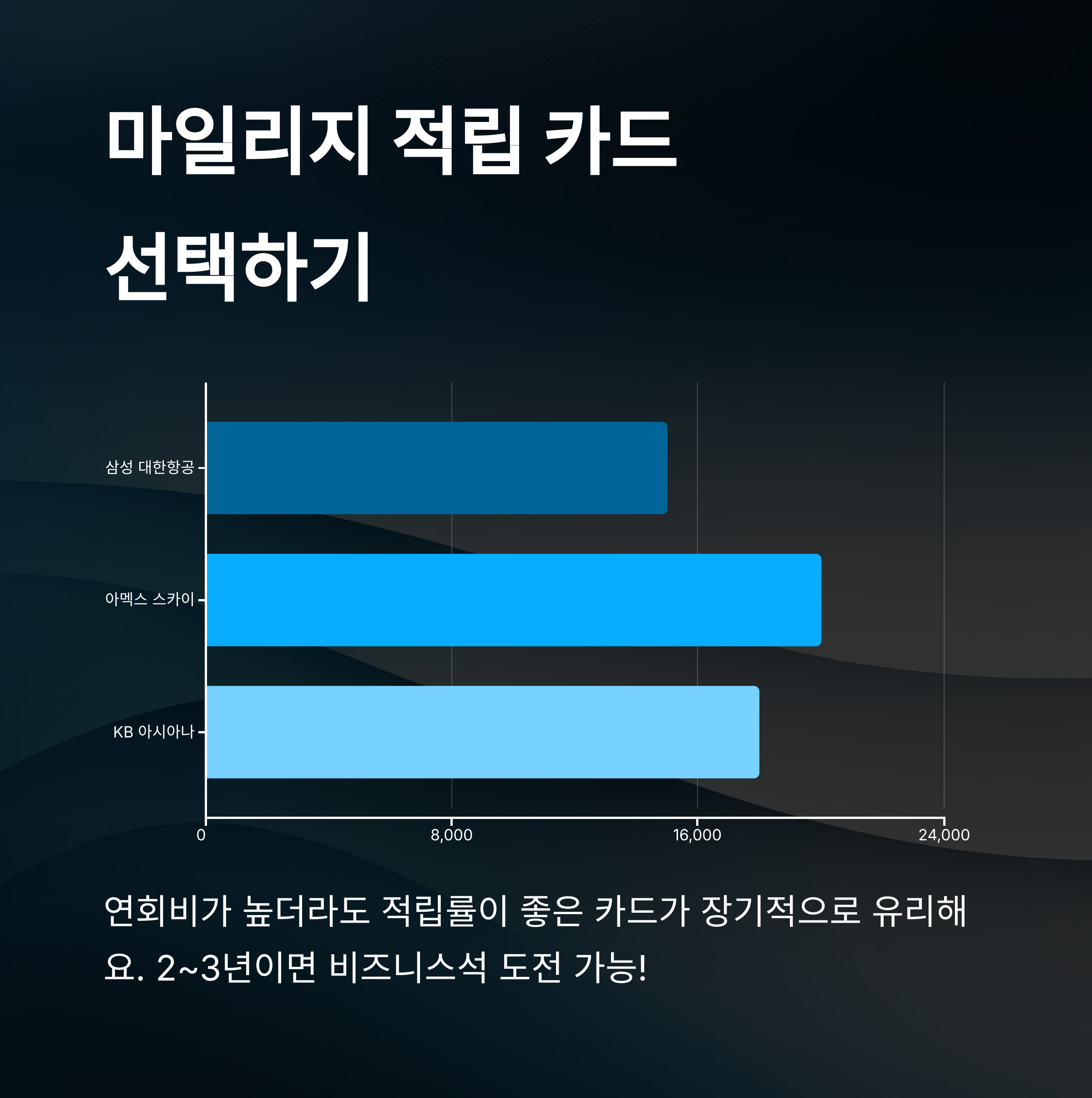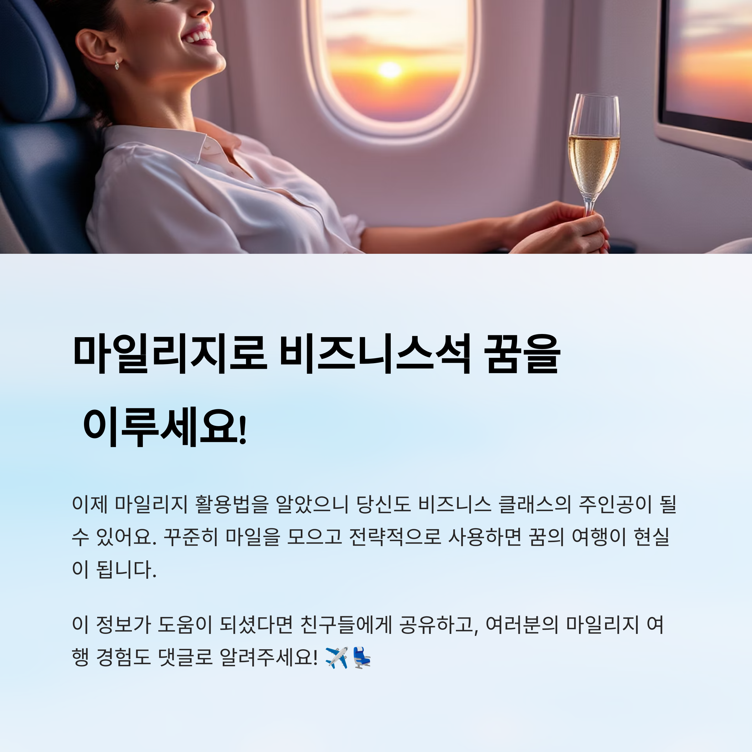 연간 1만~2만 마일 이상 모을 수 있는 카드만 잘 활용해도 2~3년 내 비즈니스 항공권에 도전할 수 있어요. 꾸준히 쌓기만 해도 언젠가는 마일 여행의 주인공이 될 수 있답니다. ✈️