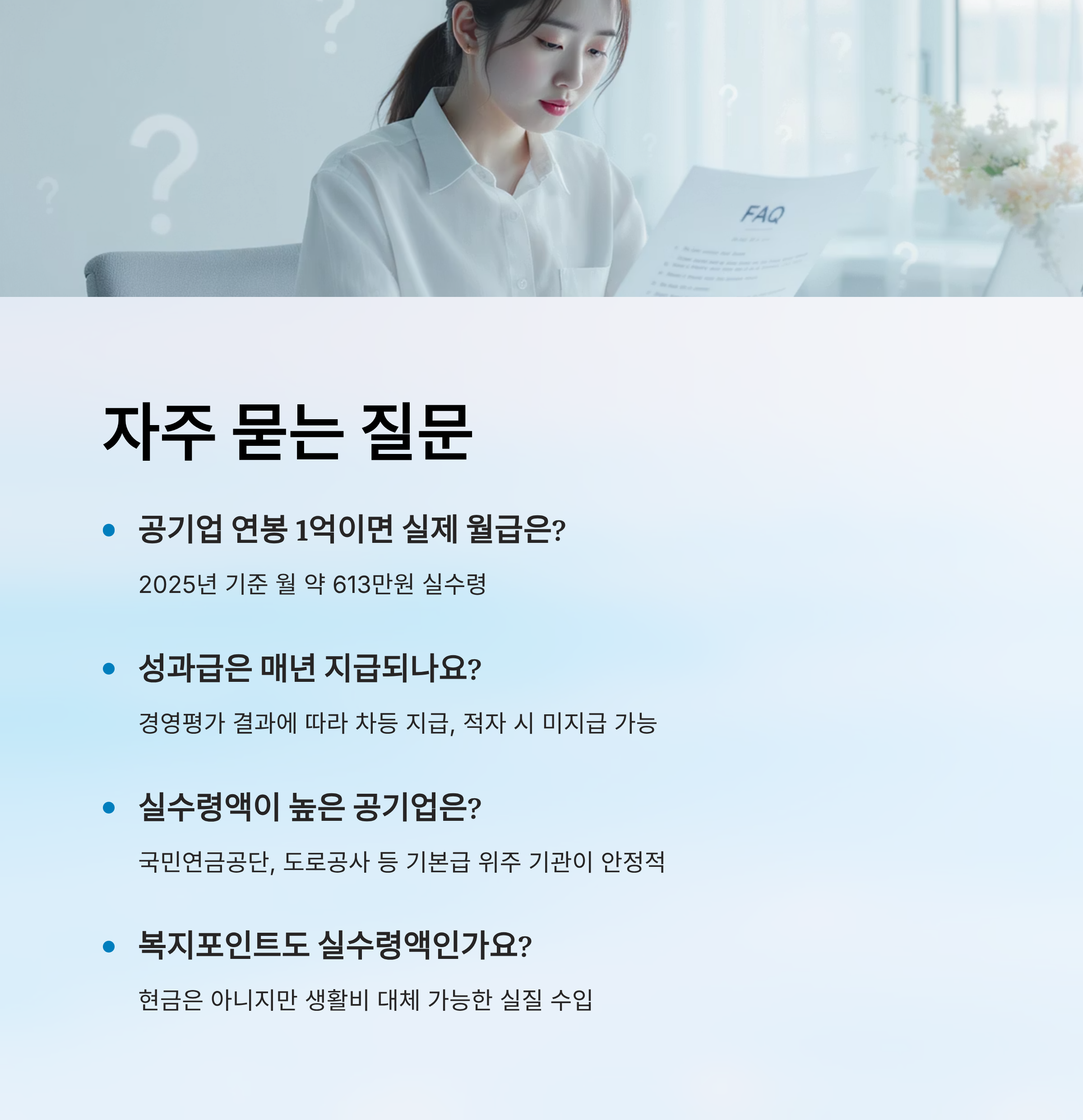 A1. 2025년 기준으로 연봉 1억 원의 실수령액은 월 약 613만 원 정도예요. 세금과 4대 보험 등을 공제하고 계산한 실제 입금 금액이랍니다.