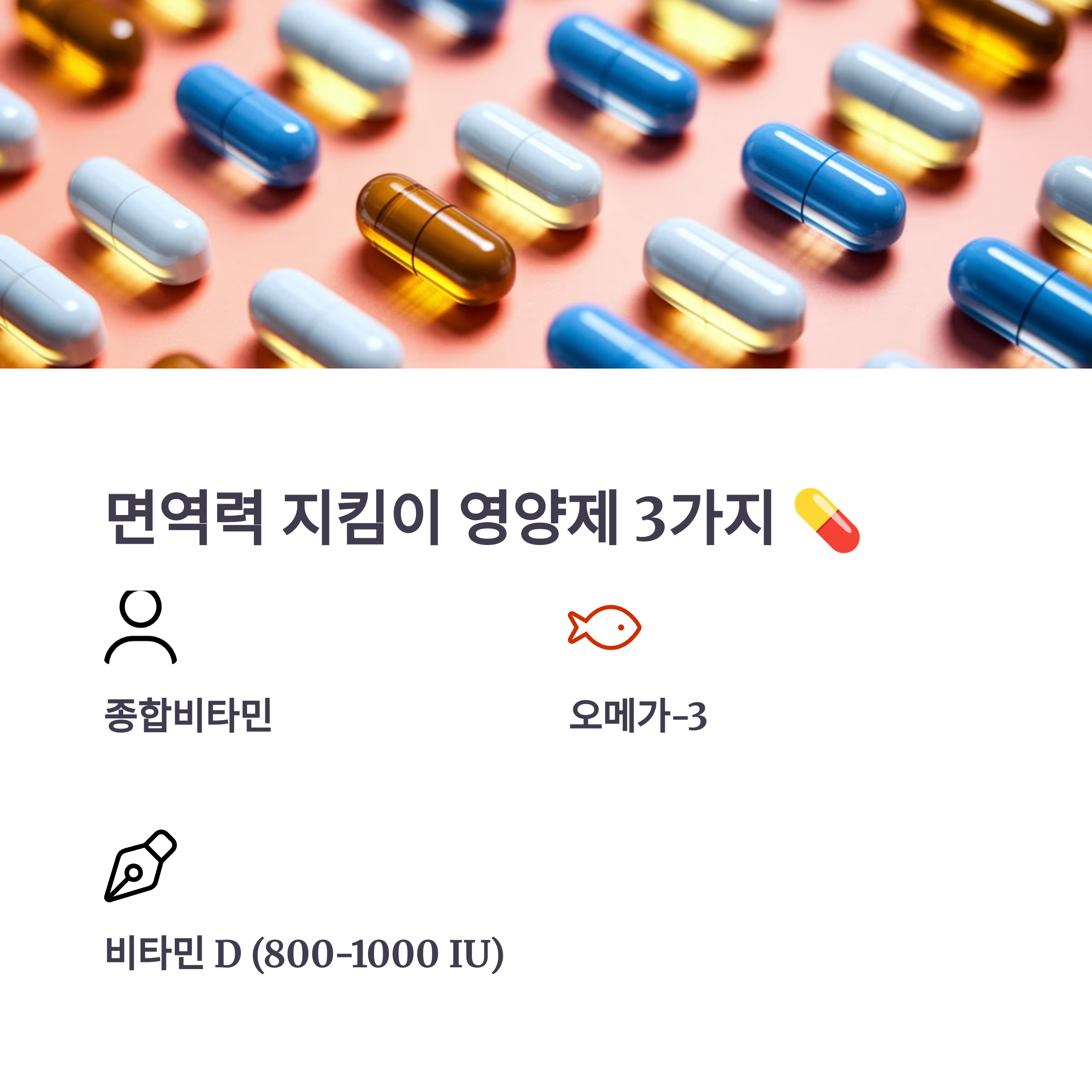 보충제를 통해 간편히 섭취할 수 있어요. 특히 면역력을 강화하는 데 도움을 주는 다음과 같은 영양제를 추천해요: