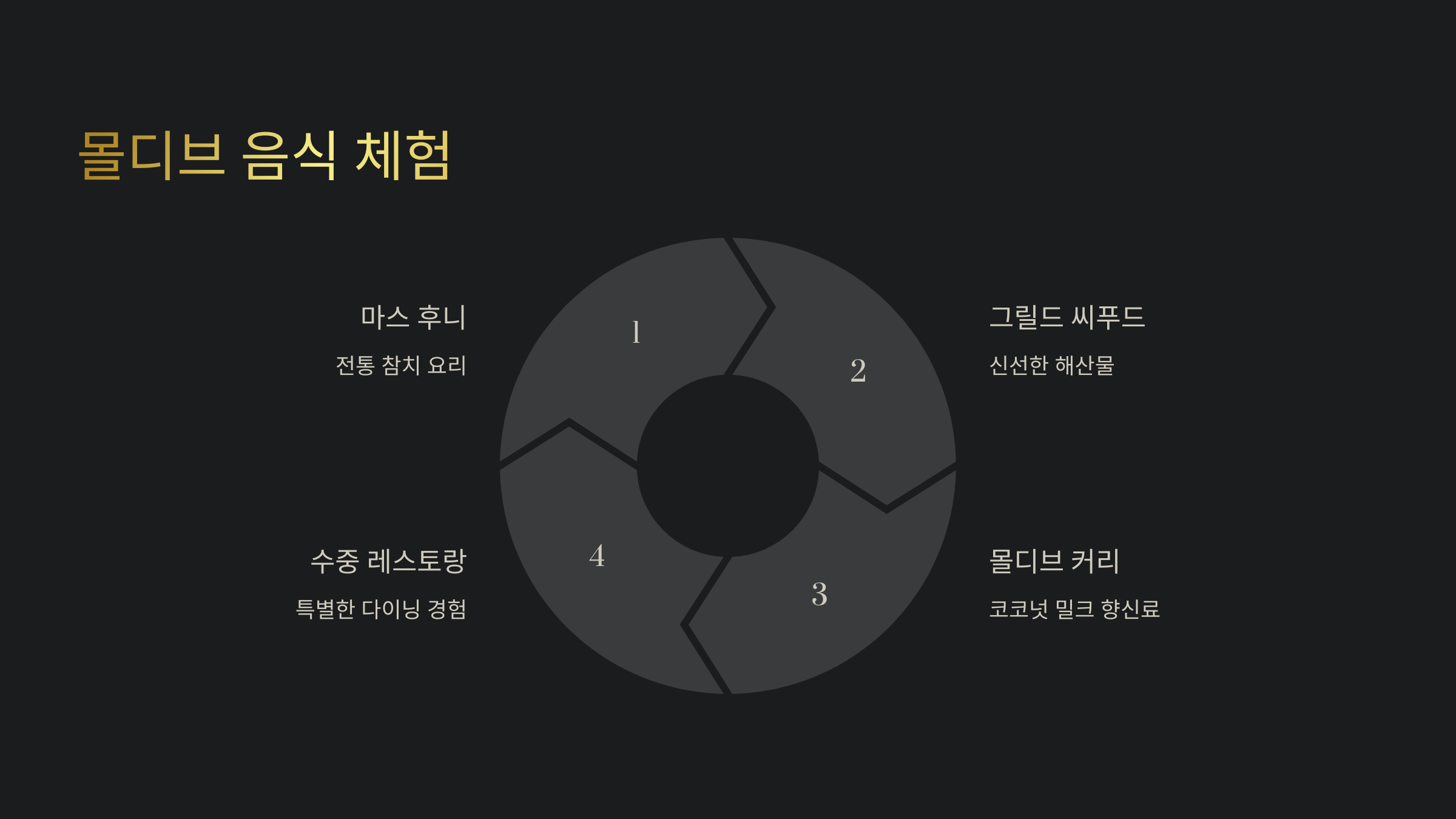 몰디브 신혼여행에서는 **로맨틱한 다이닝**도 놓칠 수 없어요! 🌊💑 리조트에서 제공하는 **프라이빗 디너, 수중 레스토랑, 올 인클루시브 다이닝**까지 다양한 미식을 경험해 보세요.