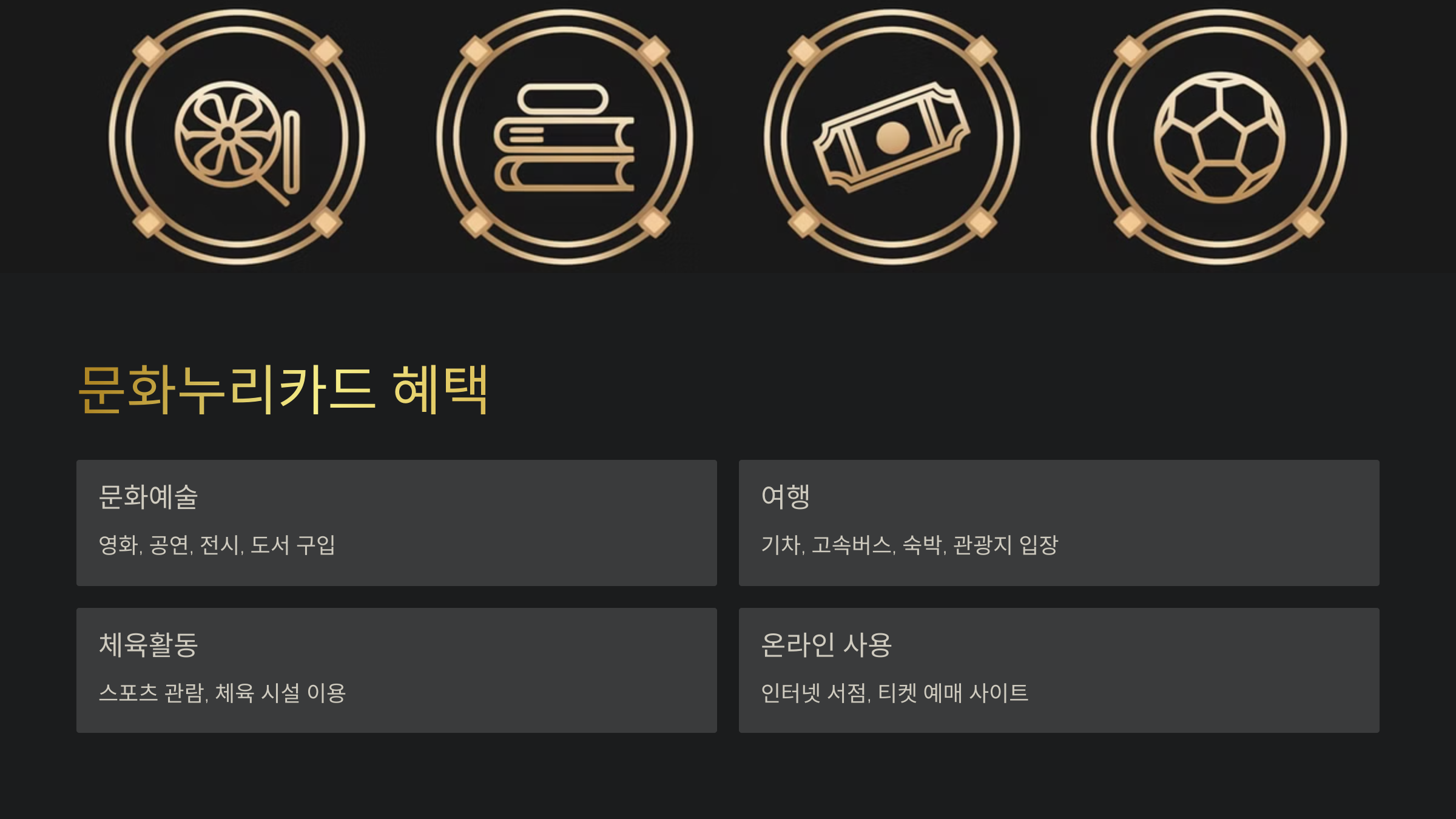 | 사용처 | 공연, 서점, 영화관, 여행, 스포츠 등 |