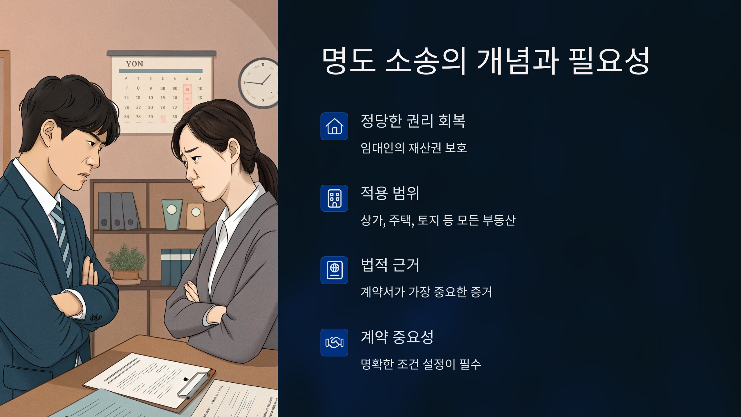 부동산 명도 소송은 임대차 관계에서 발생하는 주요 갈등 중 하나로, 임대인이 점유를 회복하기 위해 진행하는 법적 절차예요. 임차인이 계약 종료 후에도 부동산을 반환하지 않거나, 불법으로