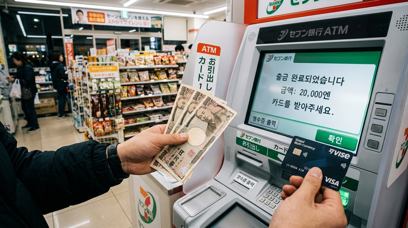 일본 편의점(세븐일레븐, 패밀리마트) 내의 ATM을 이용하면 트래블카드로 수수료 없이 엔화를 찾을 수 있습니다. 단, 카드마다 제휴 ATM이 다르니 미리 확인하세요!