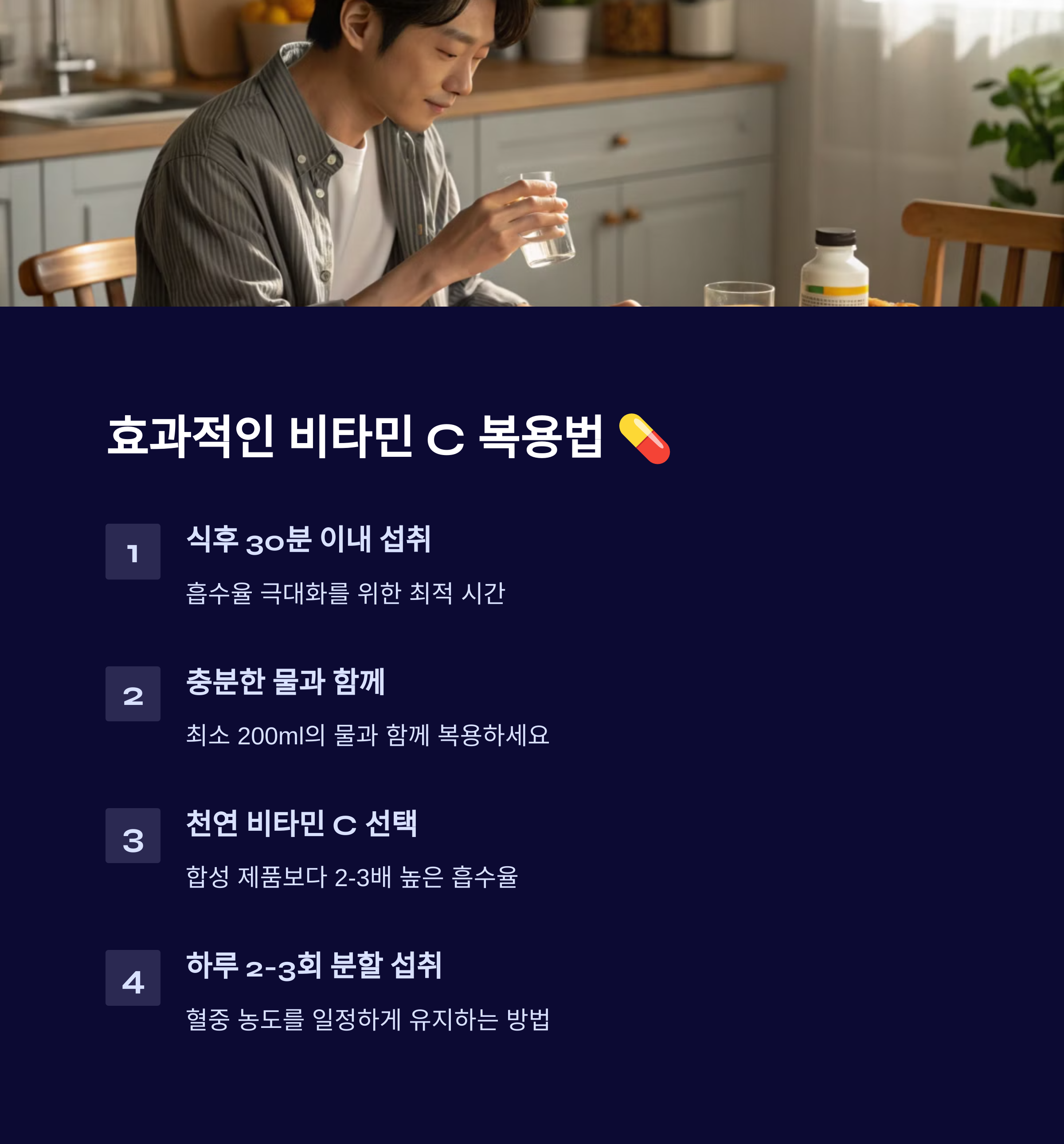비타민 C는 적정량을 복용해야 효과를 극대화할 수 있어요. 😊 특히 고용량 복용 시에는 부작용을 예방할 수 있도록 주의가 필요해요.