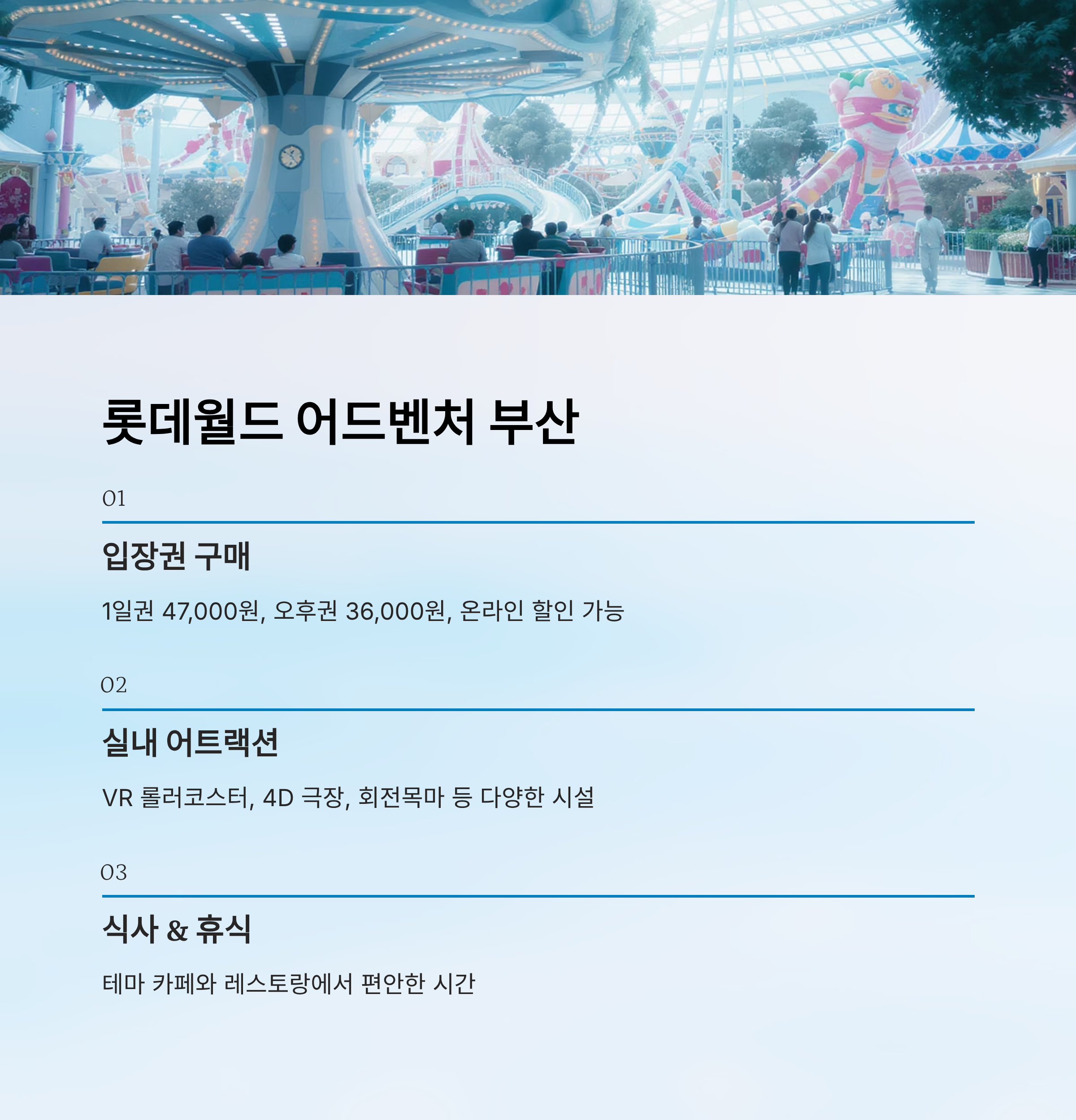 부산 오시리아 관광단지에 위치한 롯데월드 어드벤처 부산은 실내와 실외 놀이시설이 함께 있어 날씨에 따라 유동적으로 계획 짤 수 있는 장점이 있어요. 특히 비 오는 날엔 실내 어트랙션과 퍼레이드 중심으로 즐기면 좋아요.